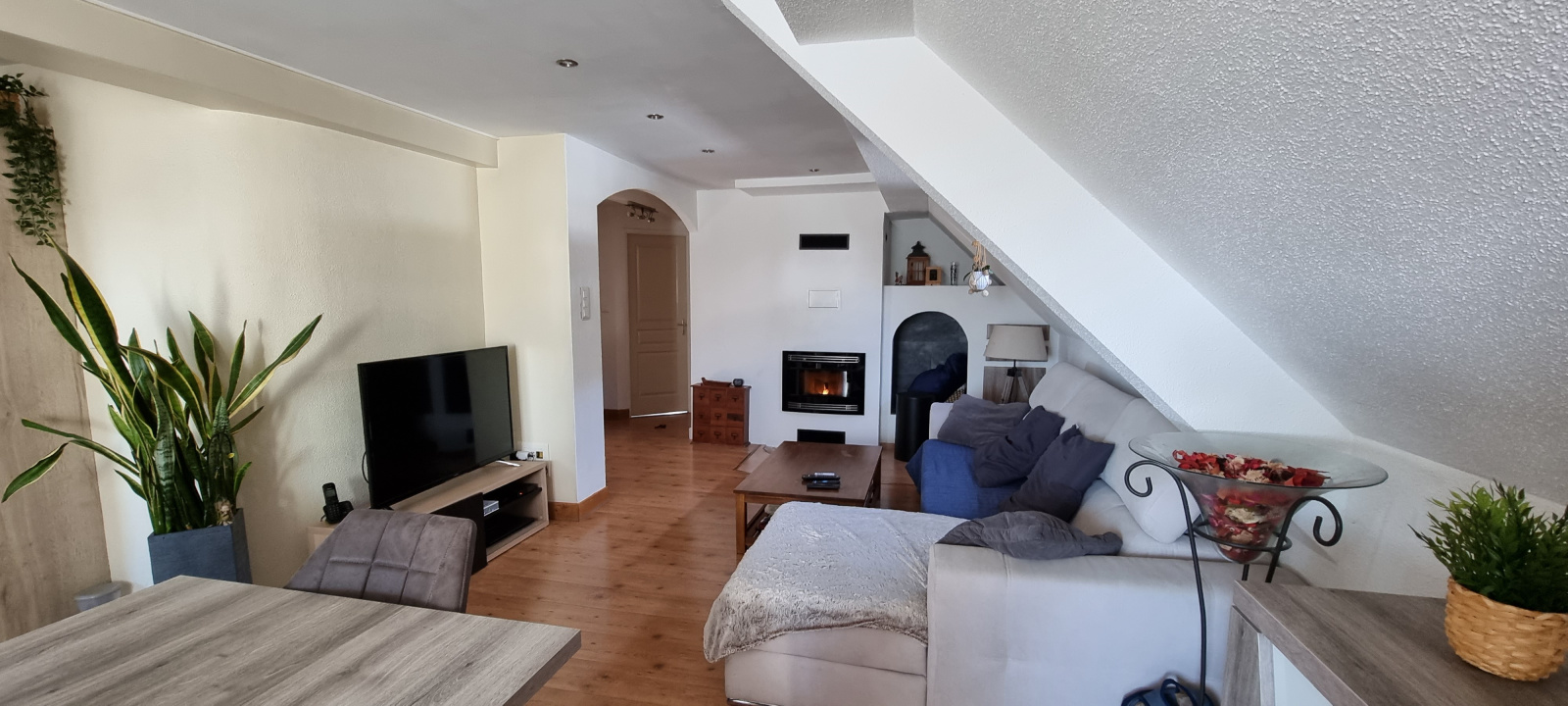 L’appartement comprend : entrée, couloir, séjour/salon/cuisine équipée impeccable, salle de bains avec douche et toilettes, 3 chambres dont une avec dressing.