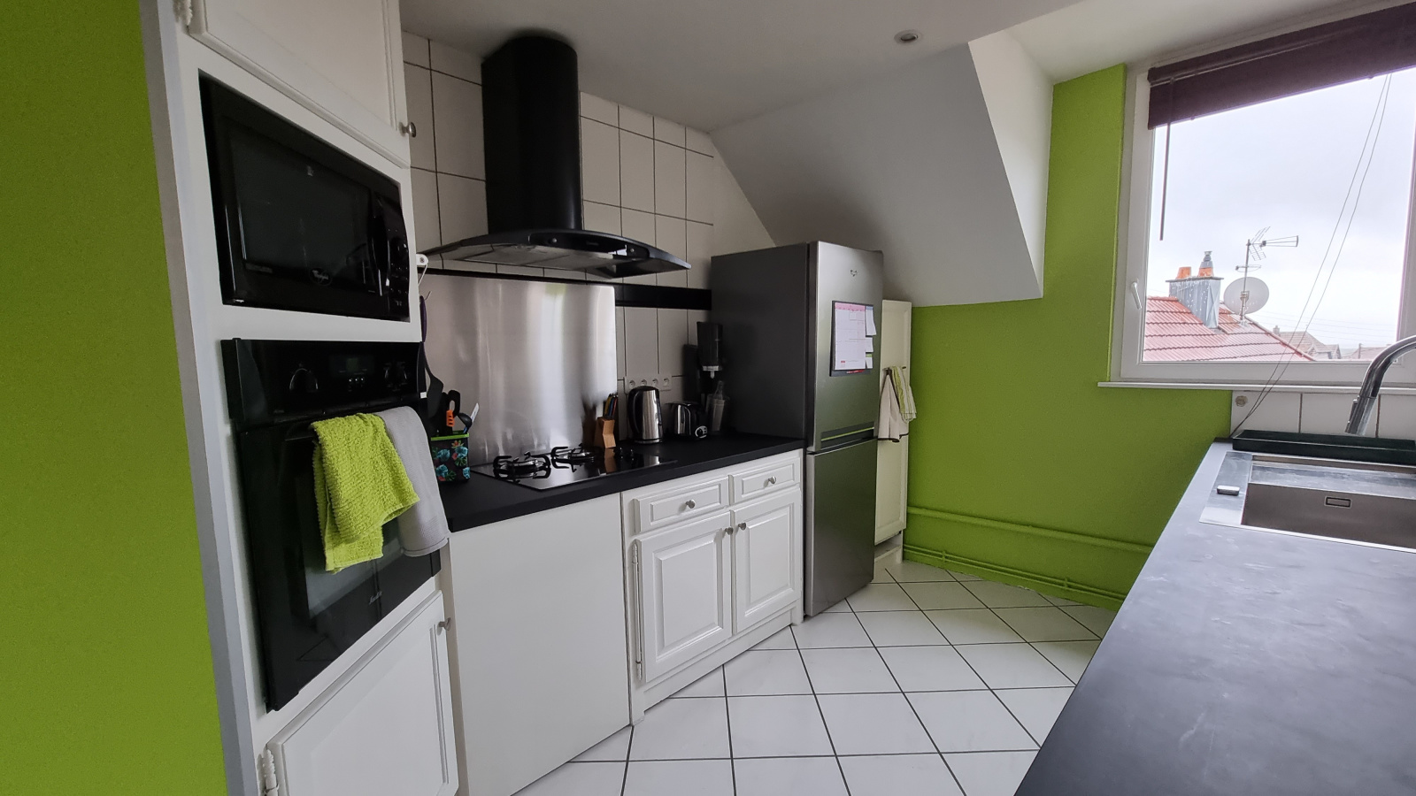 L’appartement comprend : entrée, escalier, couloir, séjour/salon, cuisine équipée impeccable, salle de bain avec baignoire toilettes, 2 chambres.