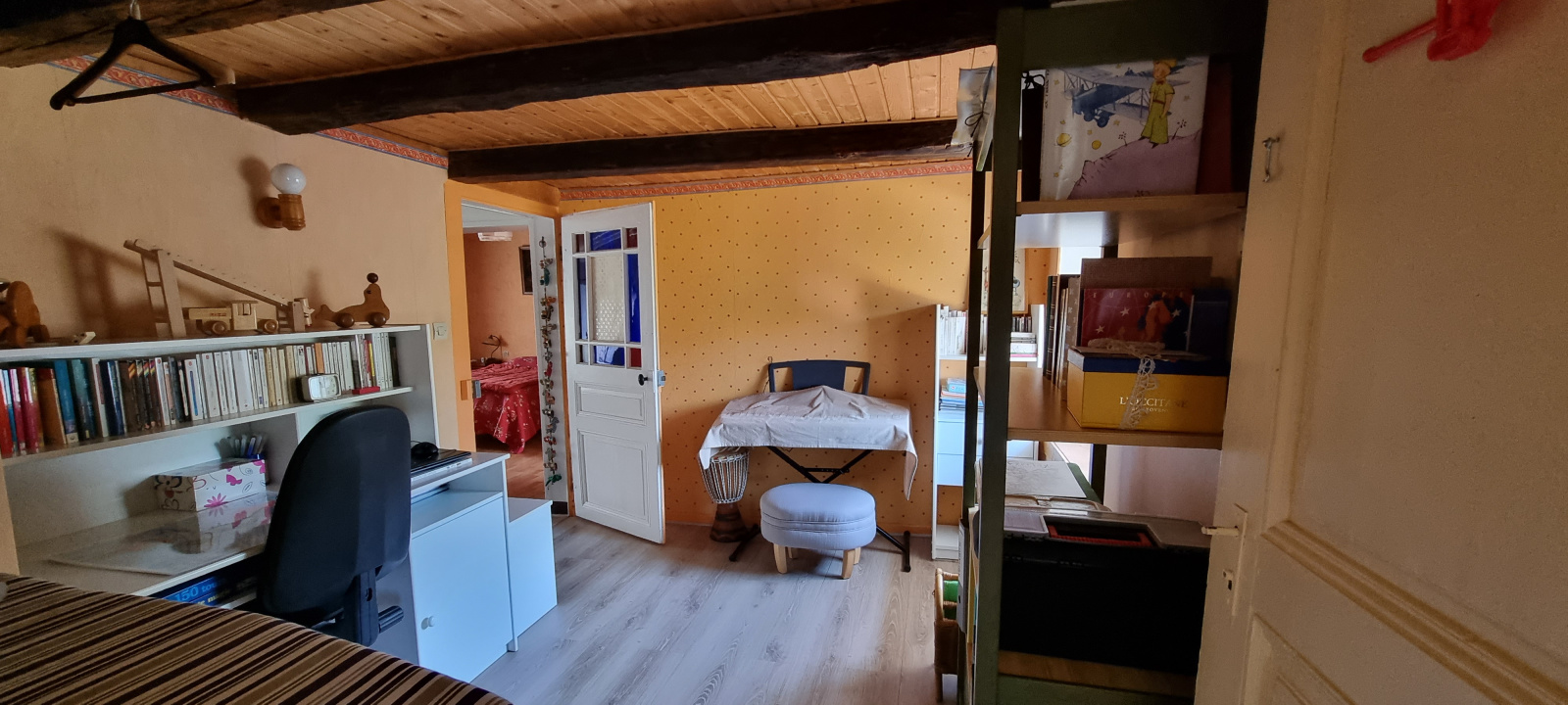 Au premier étage : deux chambres, 1 bureau, une pièce, un petit salon.