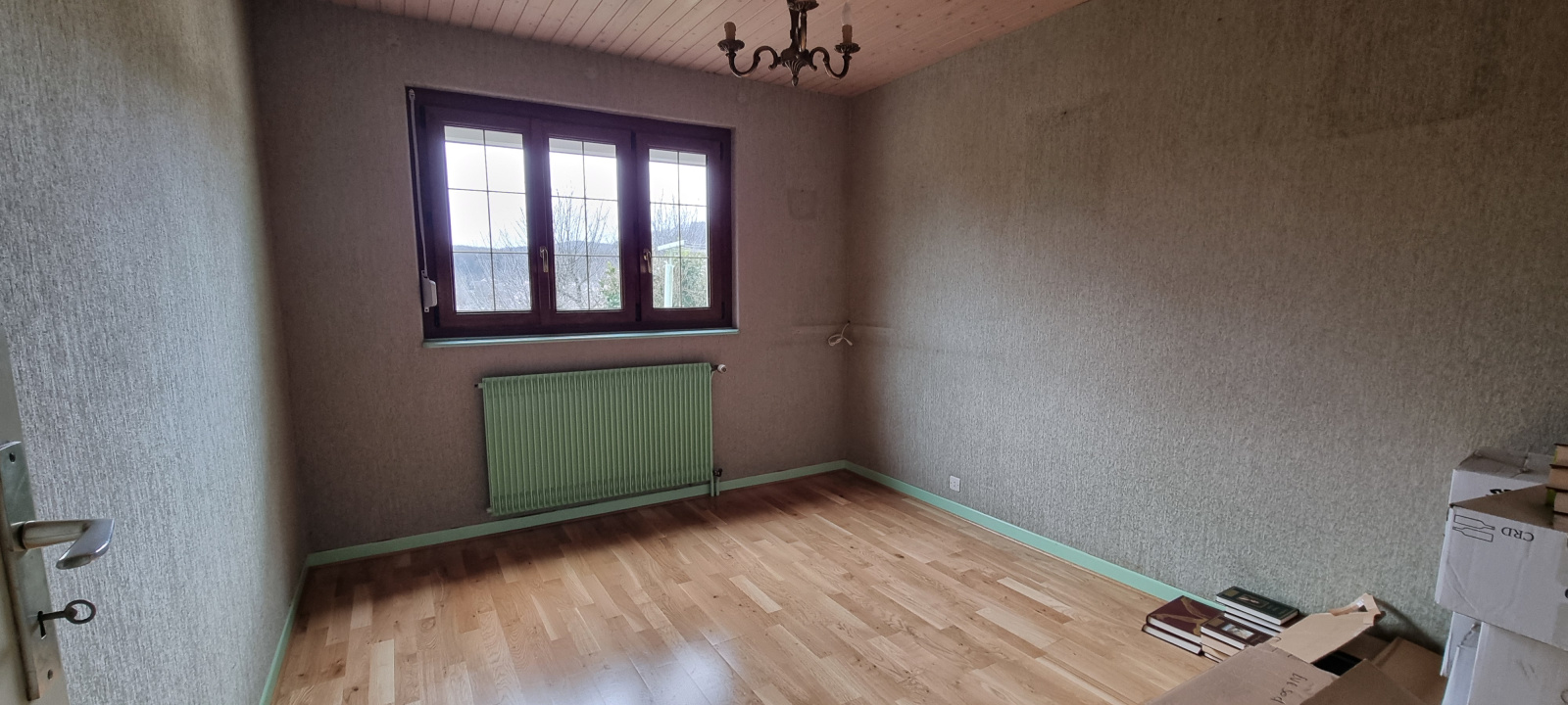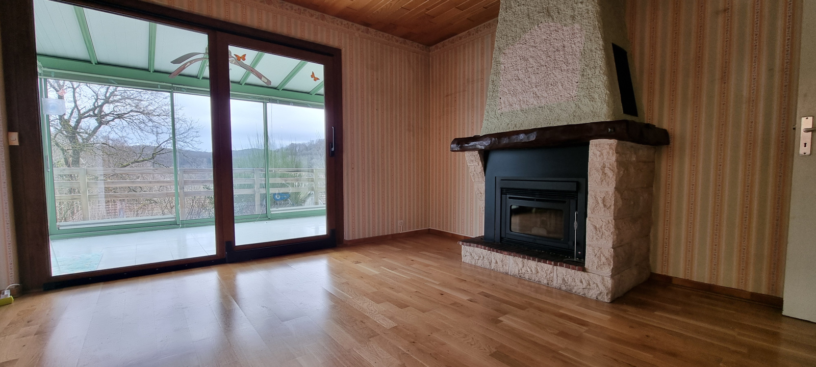Chauffage insert à granulés dans le salon/séjour (récent), chauffage fioul sur radiateurs.