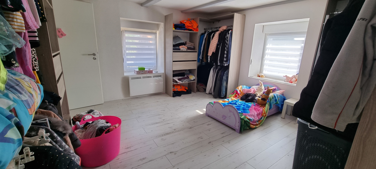 Au 1er 'étage, vous y trouverez 2 belles chambres avec un accès direct sur une grande salle de bains douche, baignoire, et toilettes.