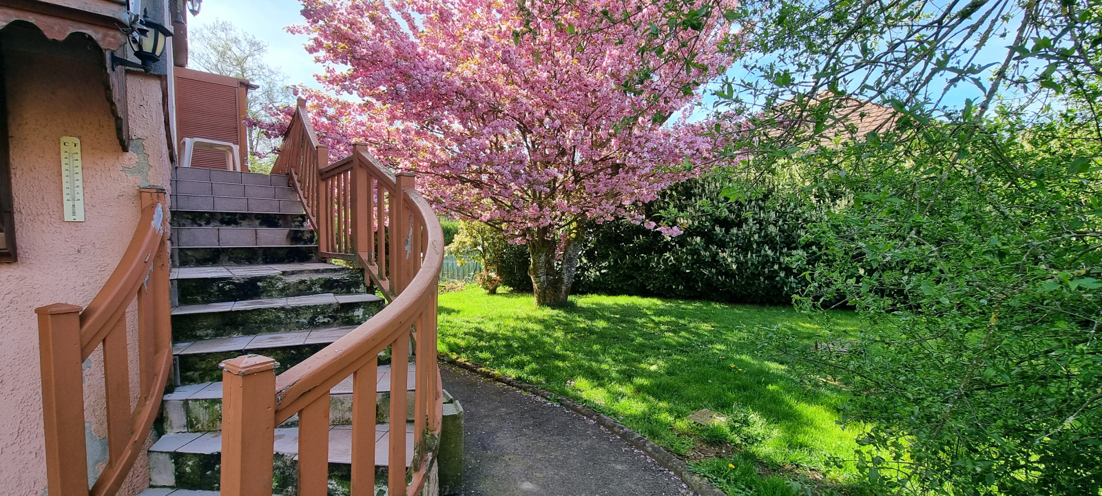 A l’extérieur, joli terrain entièrement clos et arboré.