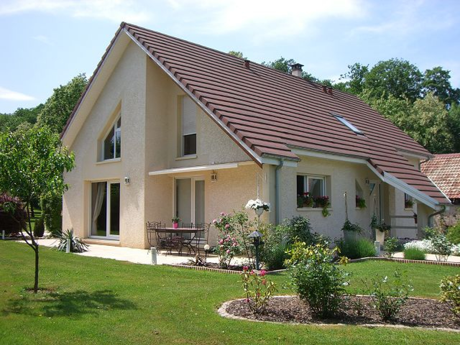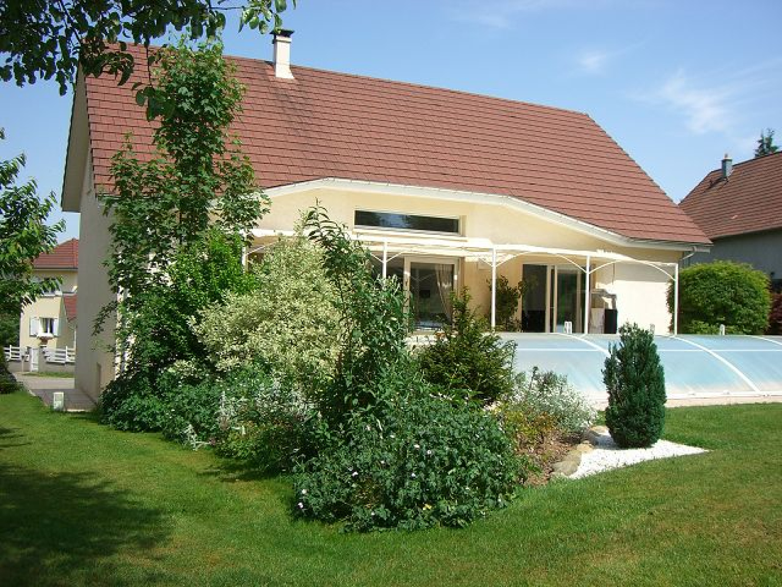 Axe Belfort/Mulhouse, Secteur calme en pleine ntaure, superbe propriétaire sur 32 ares de parc en lisière de forêt, joliment paysagé avec bassin + chalet de jardin, Suberbe Villa d’Architecte Contemporaine de 2003, F7, 180 m² hab., vaste séjour/salon cathedrale, 3 sdb, chauf sol, suite parentale, dressing, terrasse couverte, piscine avec abri coût d’entretien faible.