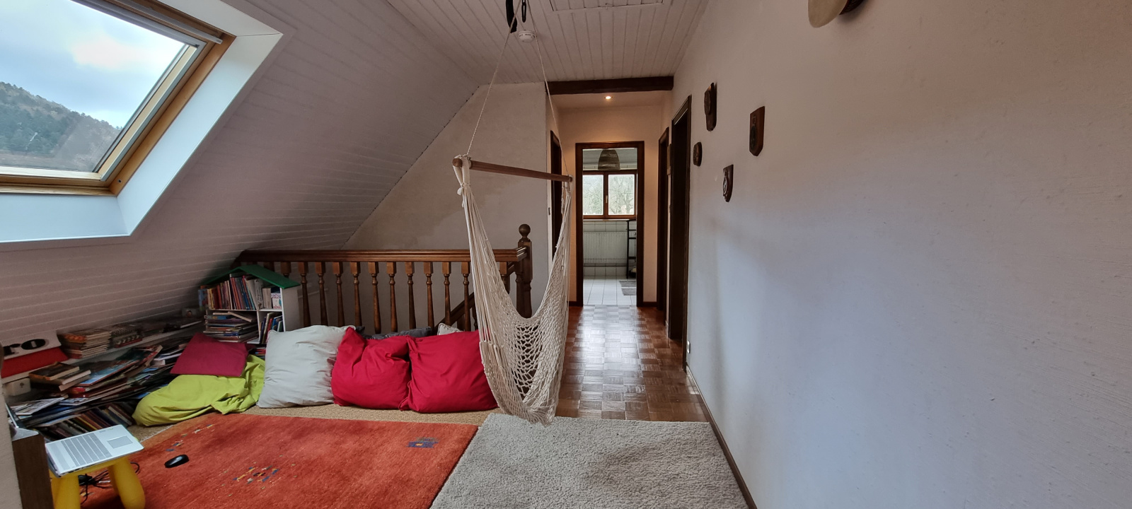 A l’extérieur : terrain arboré, possibilité de faire de beaux aménagements paysagés.