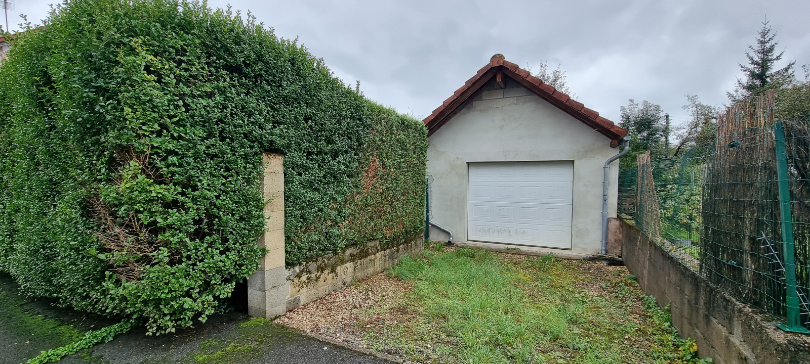 A l’extérieur : terrain entièrement clos et arboré, grand garage, terrasse.