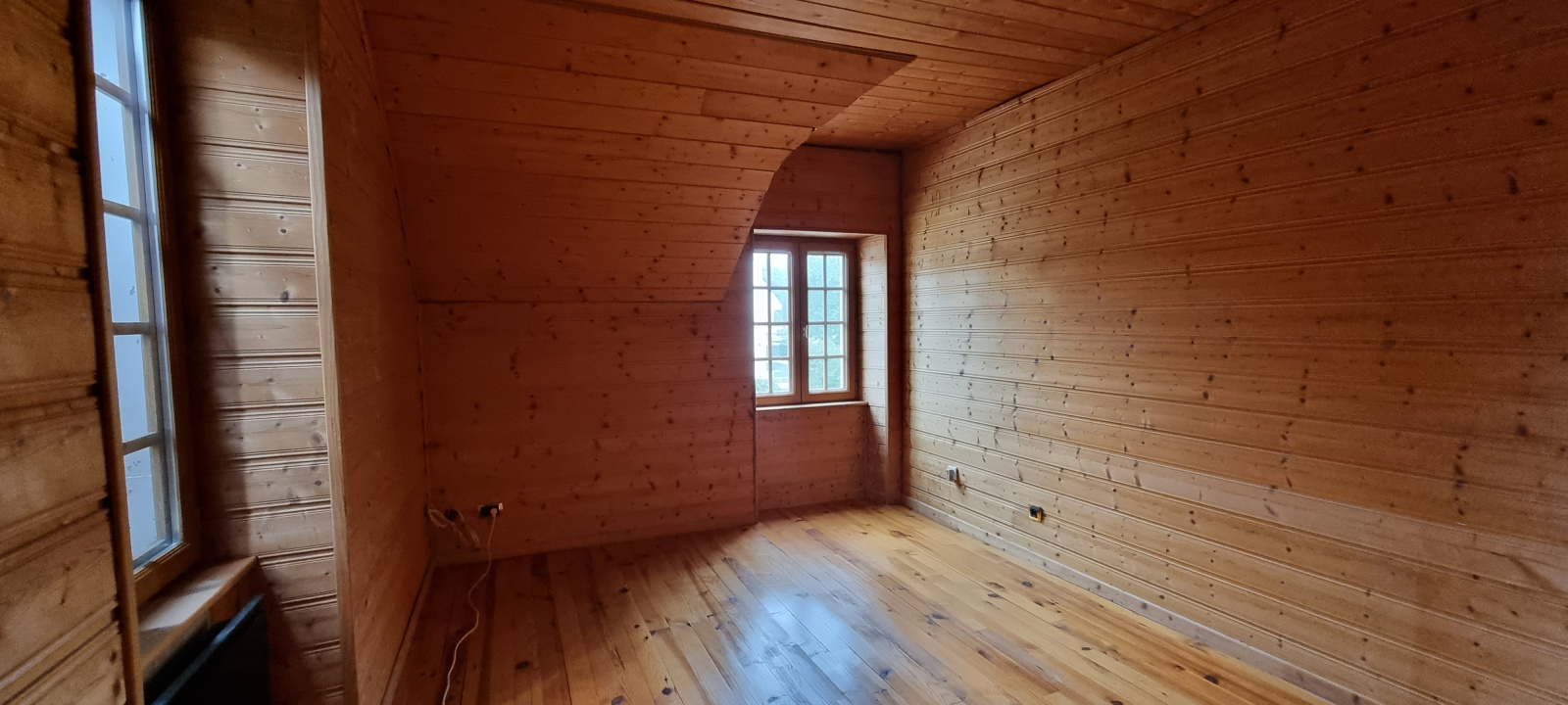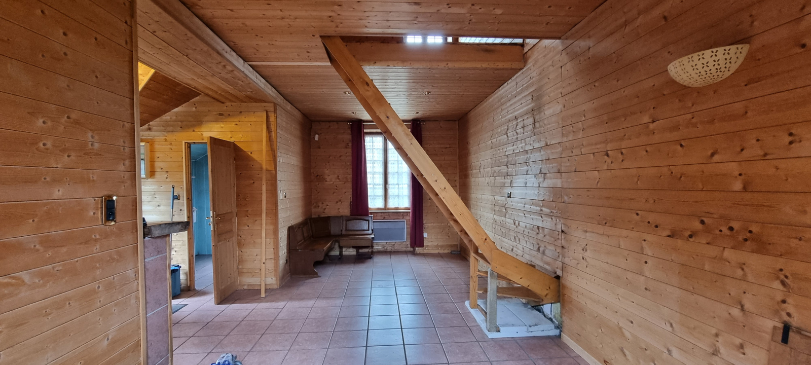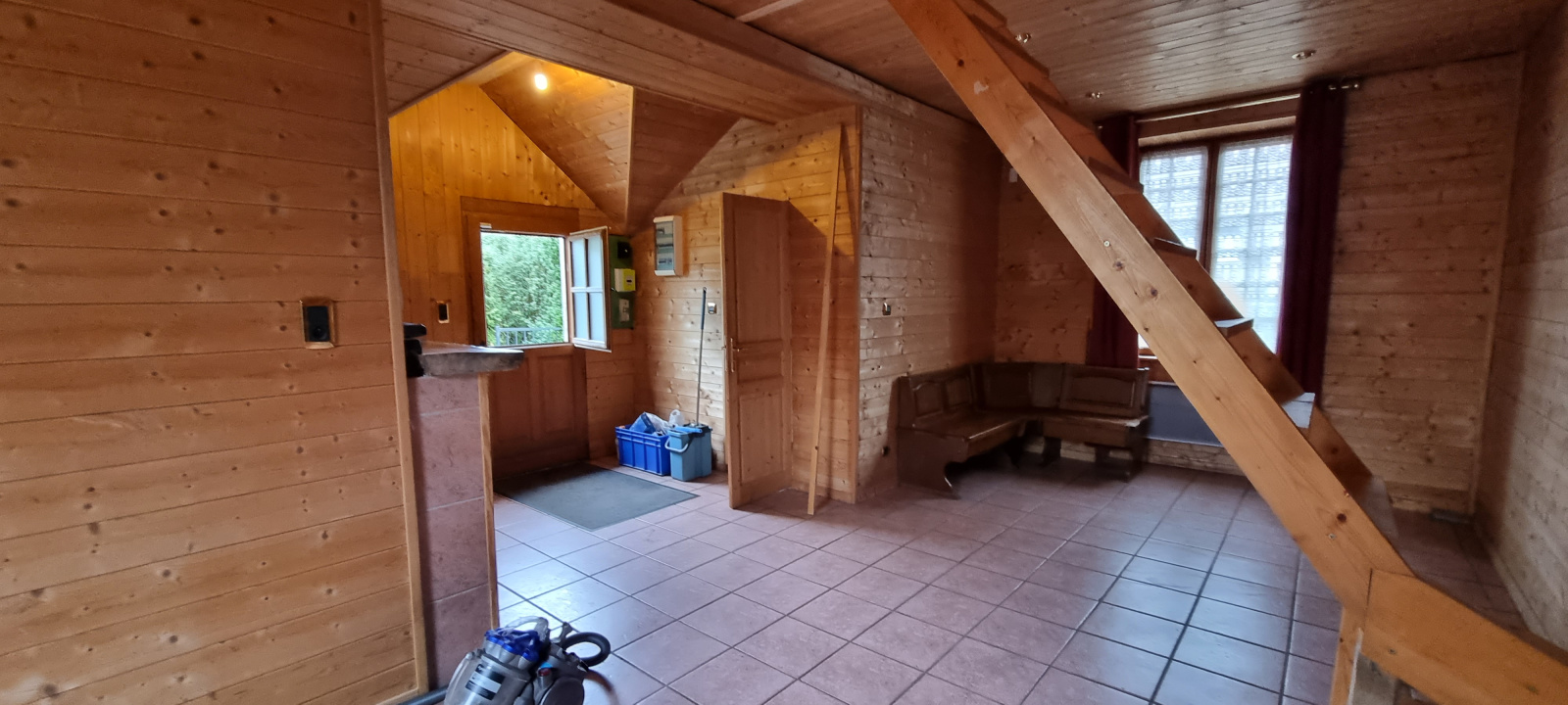 Au premier étage : grande mezzanine (ou chambre), chambre.