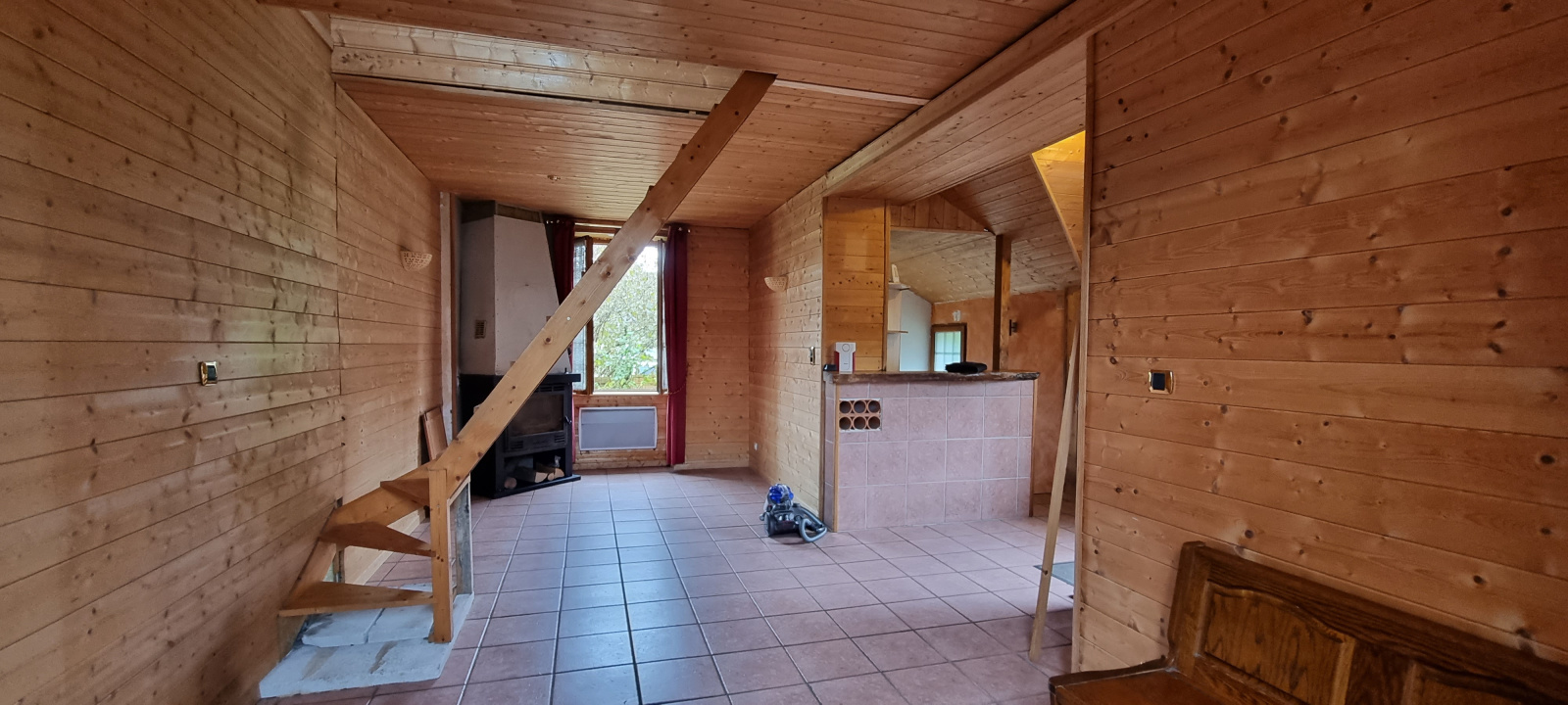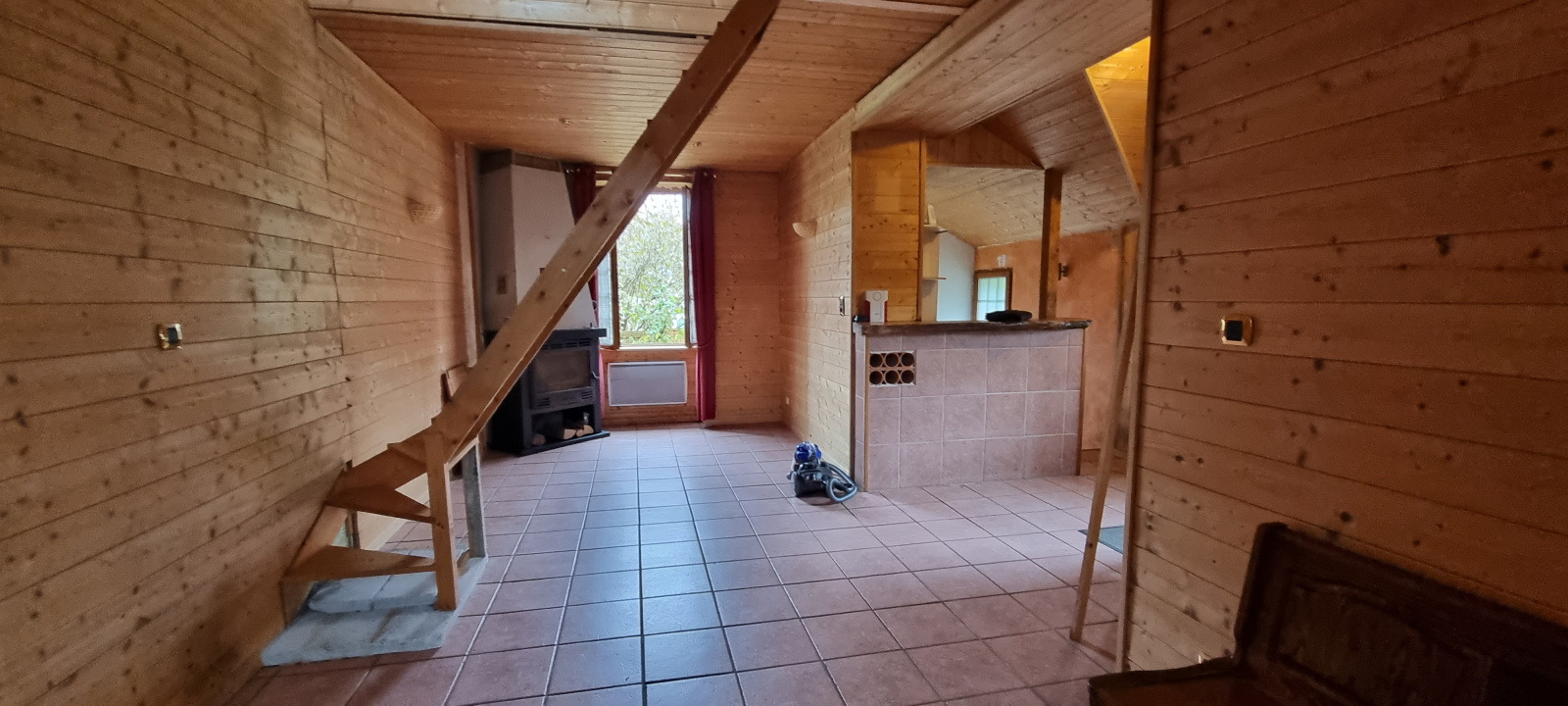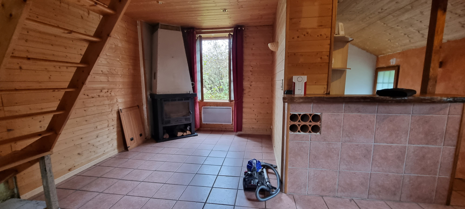 La maison comprend : au rez-de-chaussée, entrée, séjour/salon/cuisine équipée, salle d'eau avec toilettes.