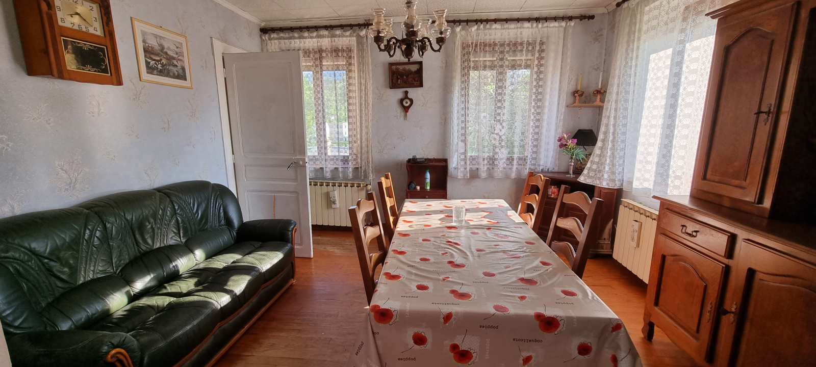 A l’extérieur : terrain arboré, garage, grande dépendance.