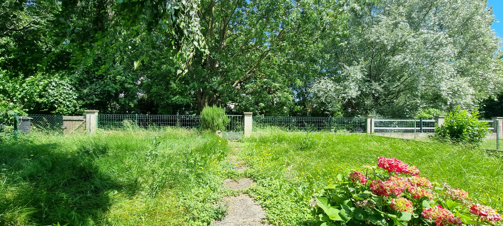A l’extérieur, joli terrain entièrement clos et arboré.