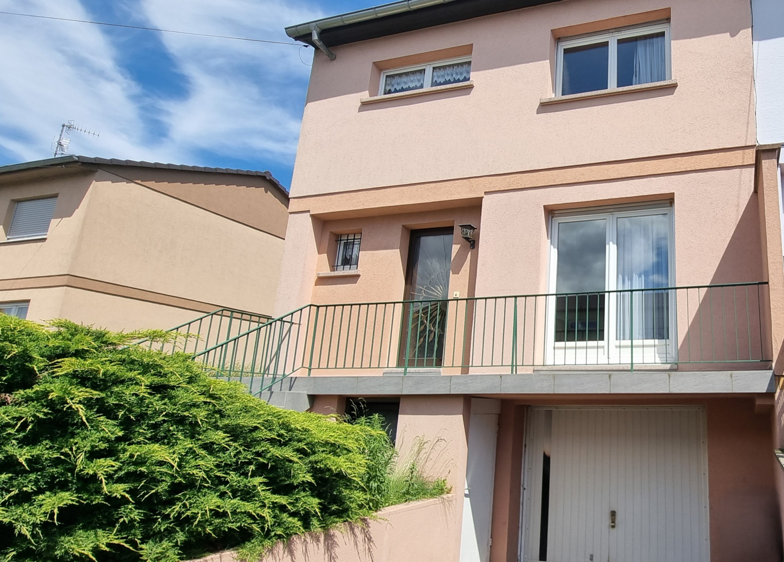 Elevée sur sous-sol enterré, avec garage, atelier, pièce buanderie.