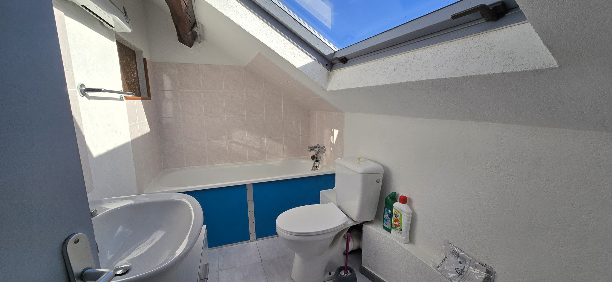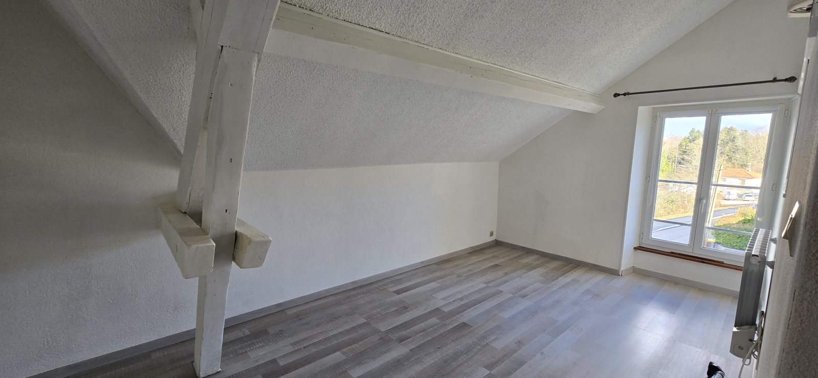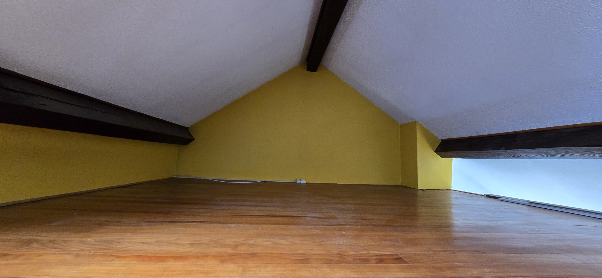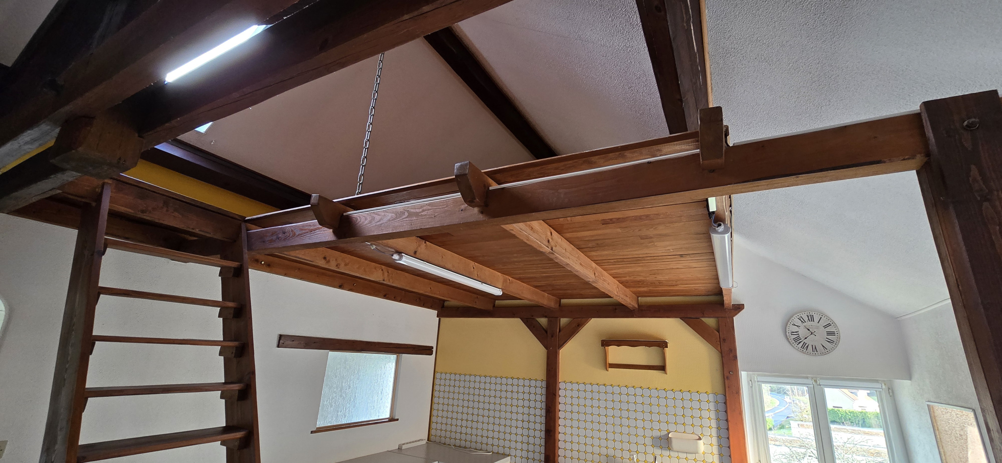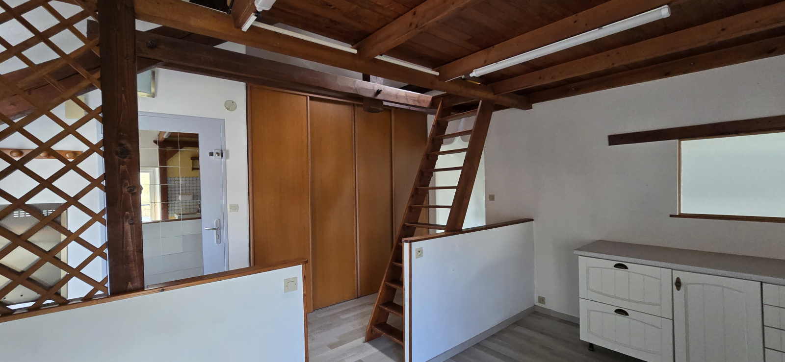 Appartement studio dans les combles avec petite mezzanine pour le rangement.