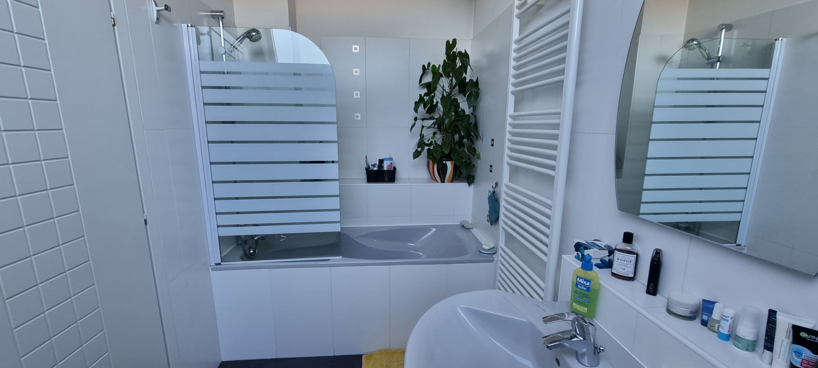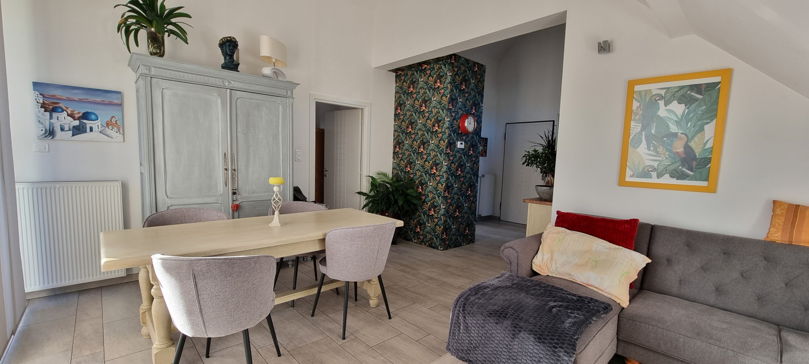 Appartement de 62.46m² loi carrez dans un immeuble entièrement rénover en 2005, avec terrasse, débarras, cave, une place de parking extérieur, un garage.