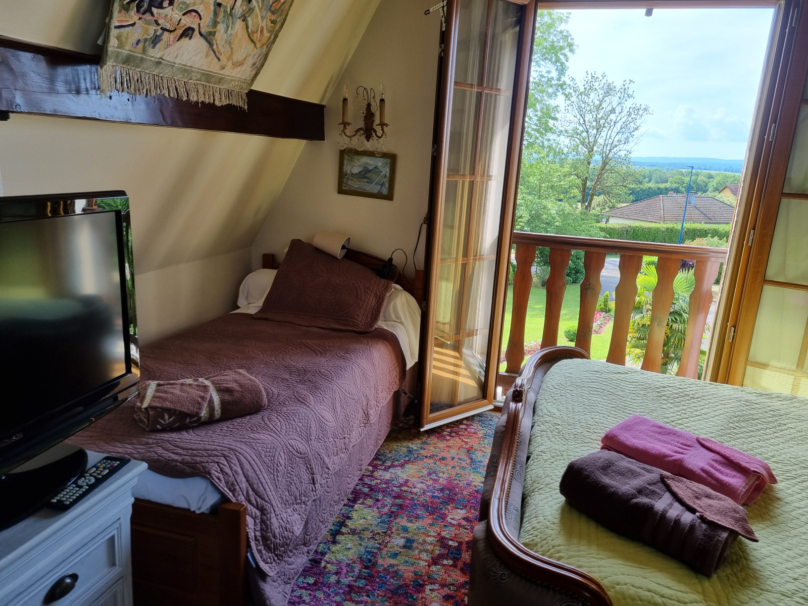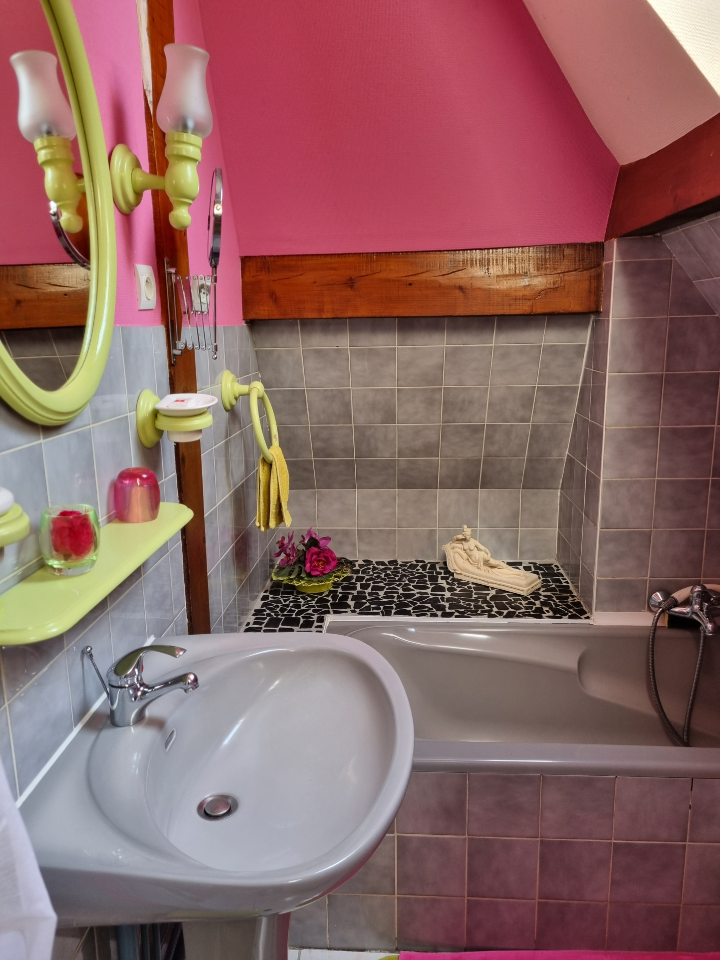 Au premier étage : mezzanine, toilettes, chambre avec kichinette et baignoire, deux autres chambres avec point d'eau.