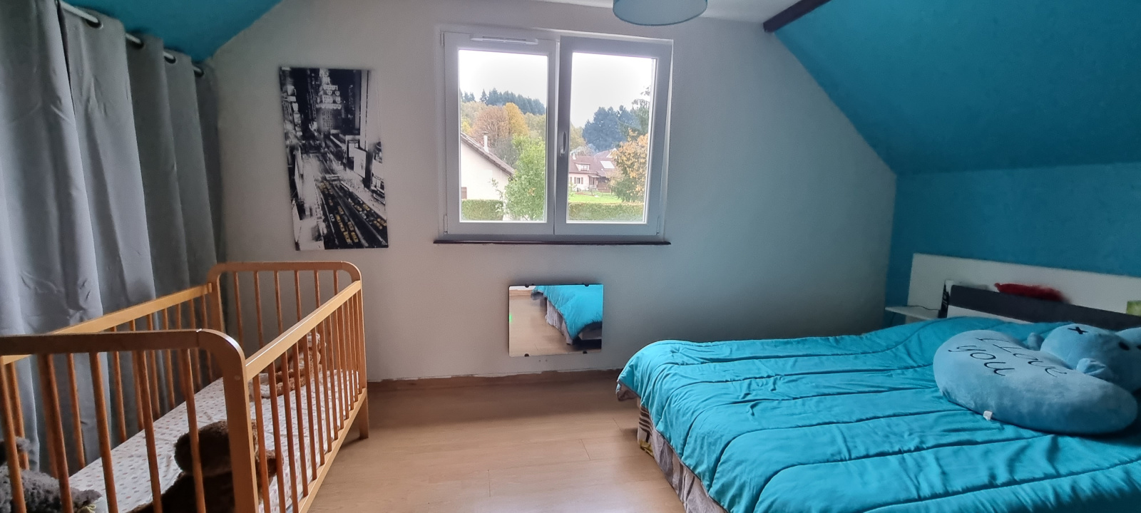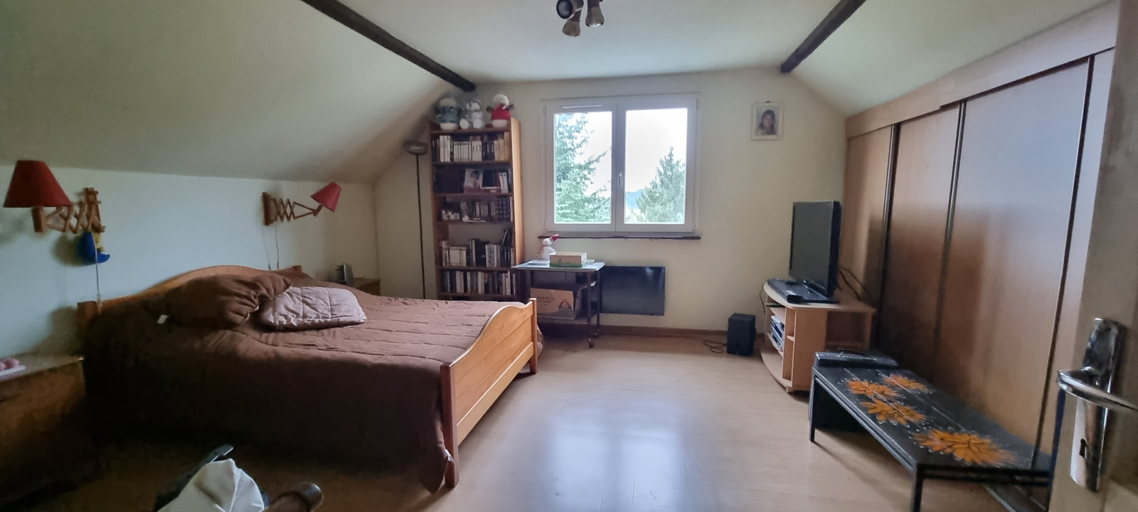 Au premier étage : palier, deux chambres, salle de bains avec toilettes, grenier.