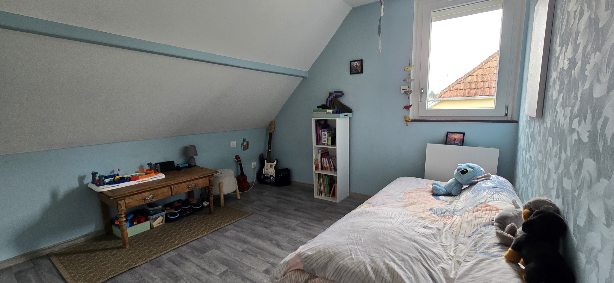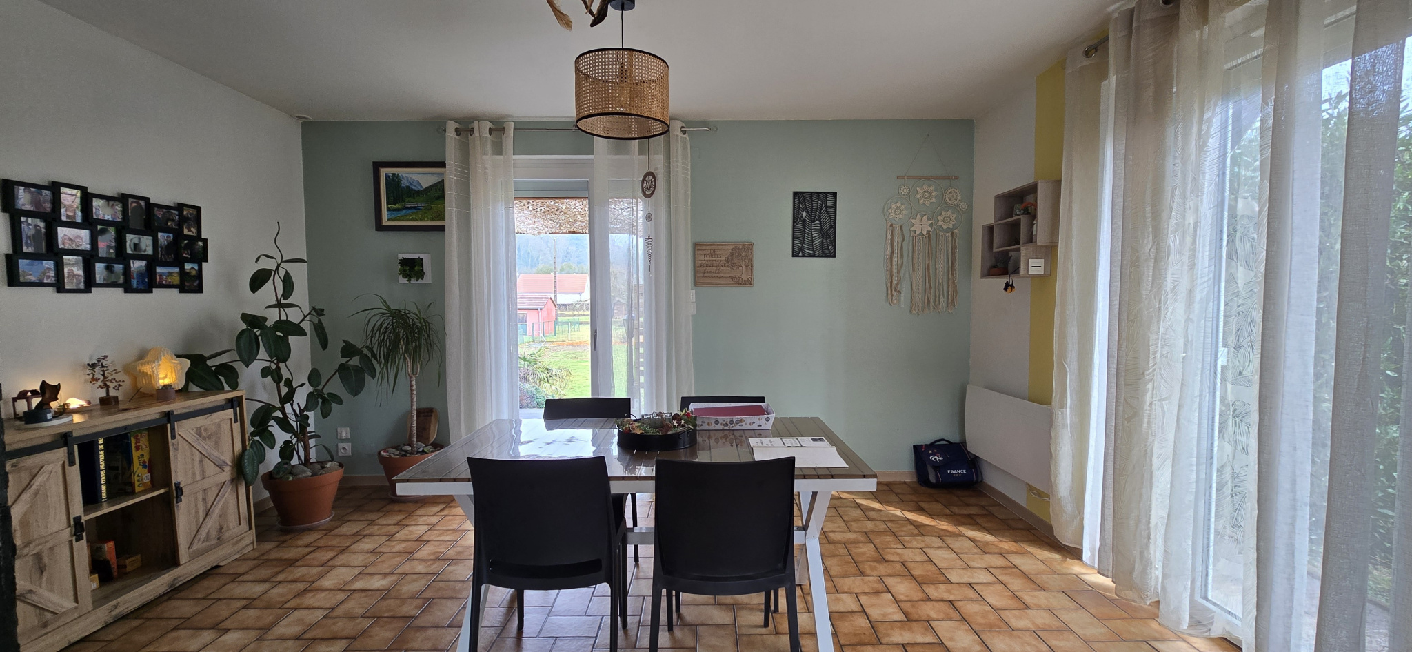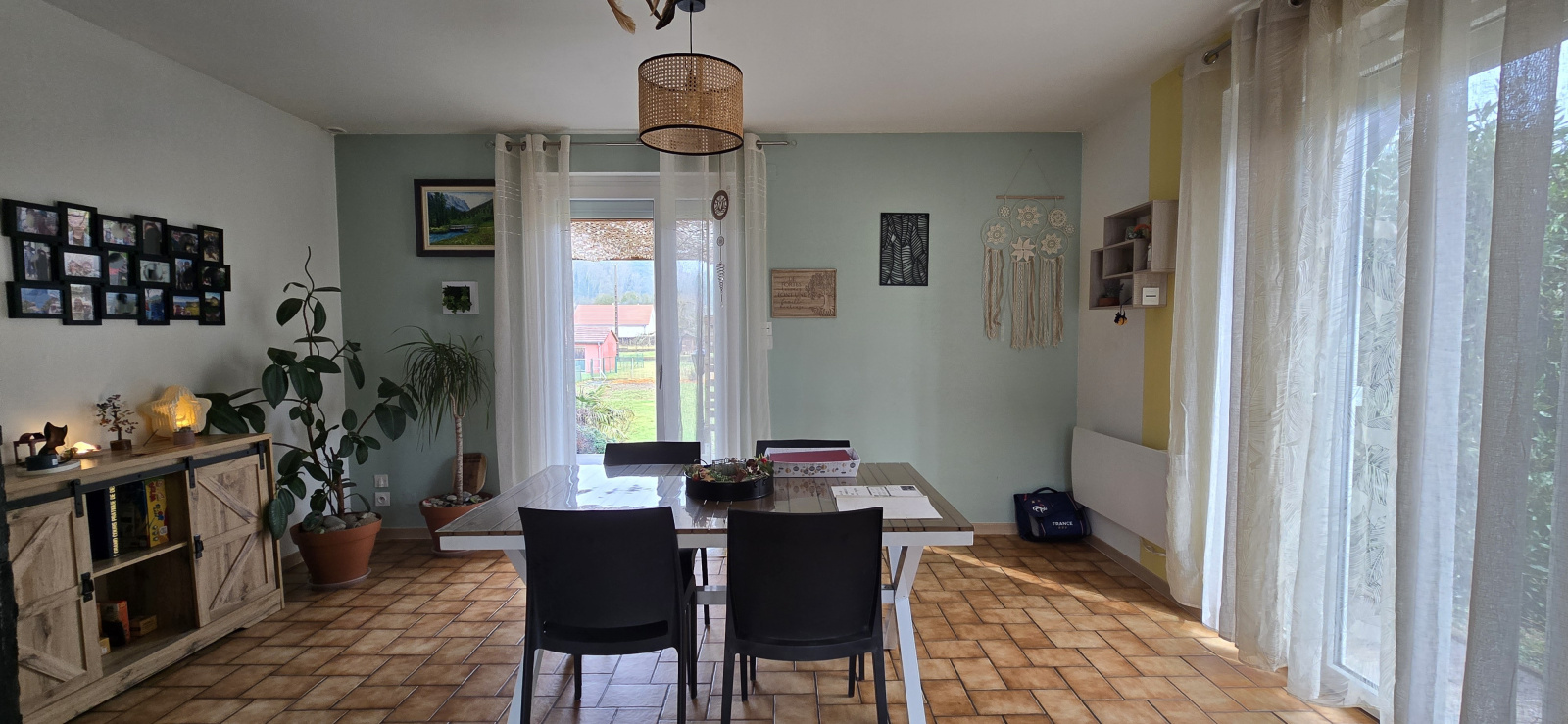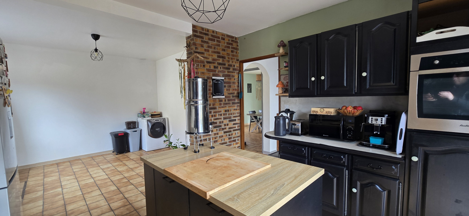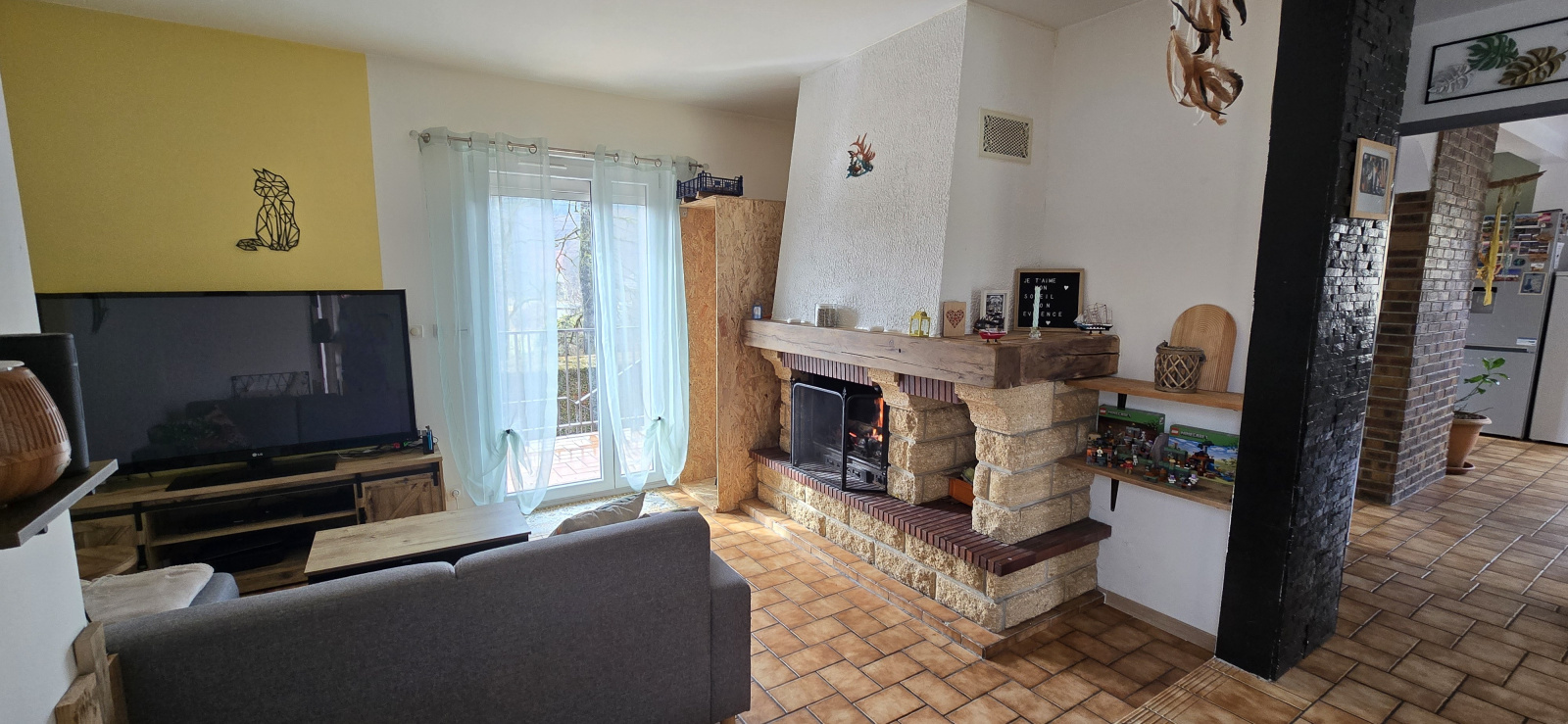 La maison comprend : au rez-de-chaussée, hall d'entrée/couloir, séjour/salon avec insert cheminée, cuisine, toilettes séparées,