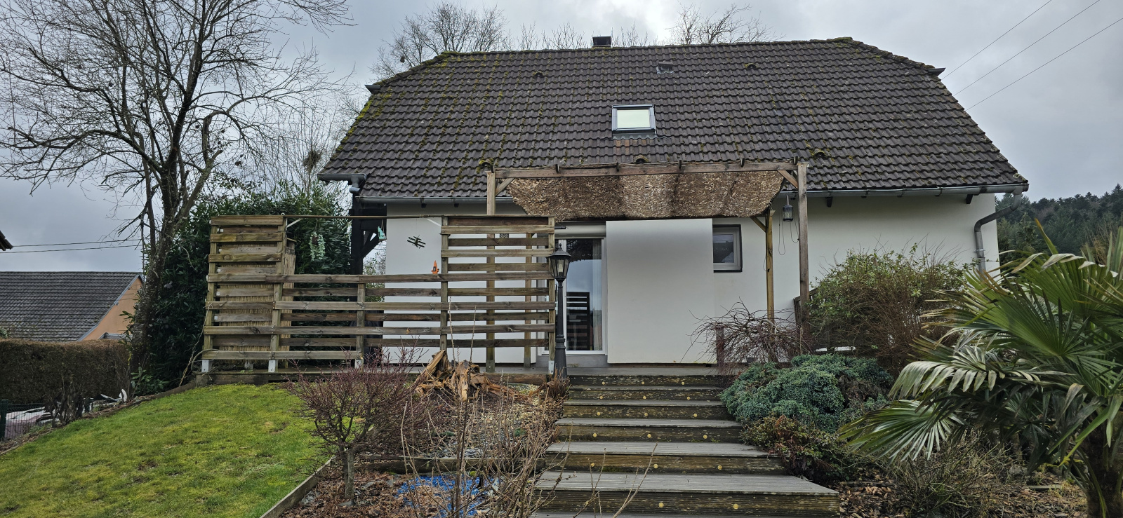 accès terrasse de plain-pied sur le devant de la maison et sur l'arrière de la maison.