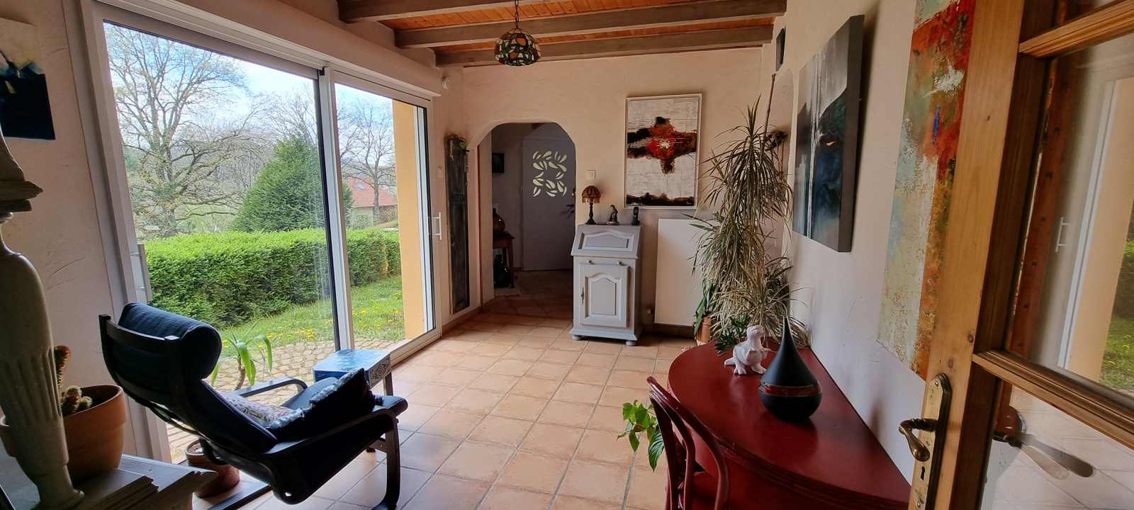 Dans un écrin de verdure en pleine nature, au calme, sans vis à vis, la première maison est à + de 40 mètres.