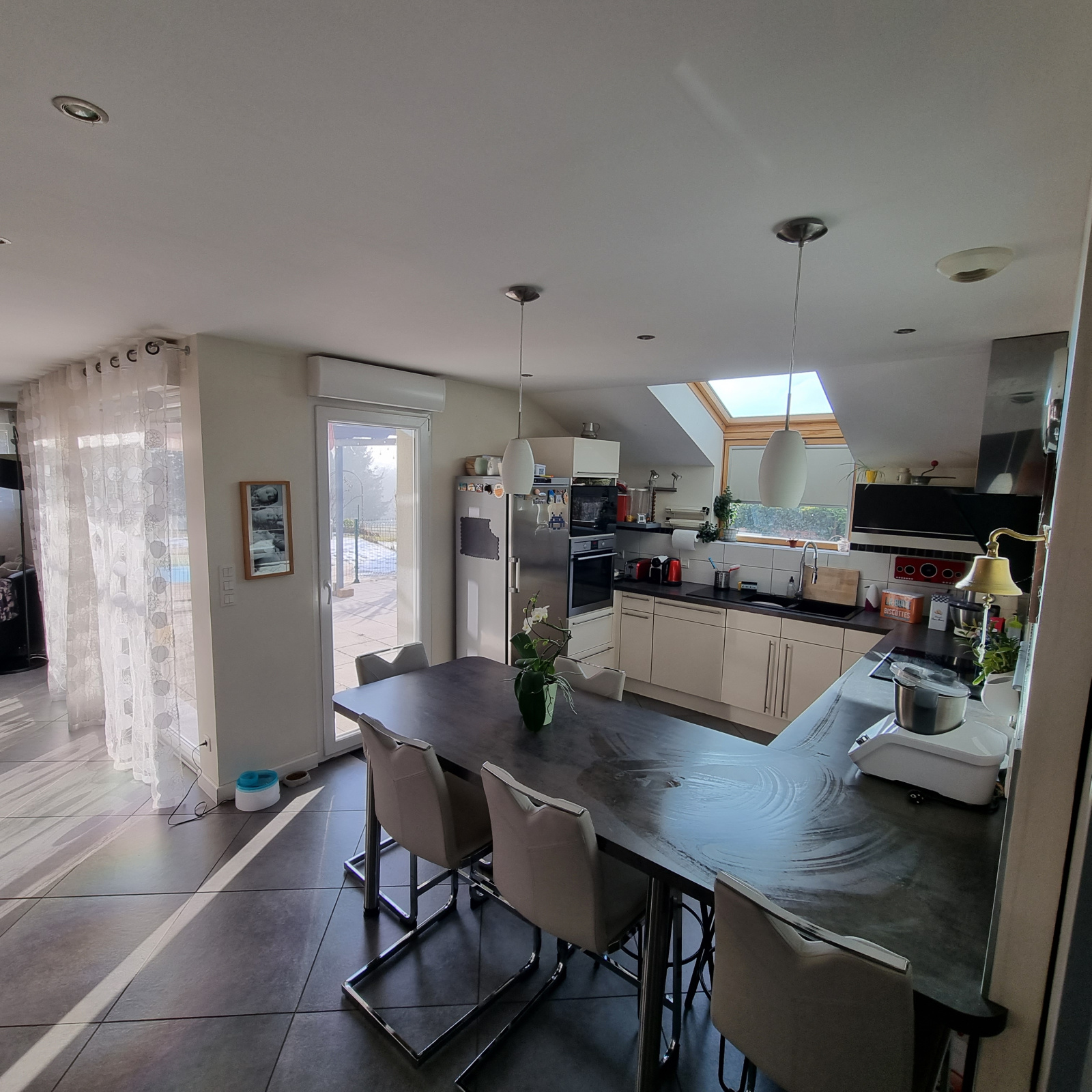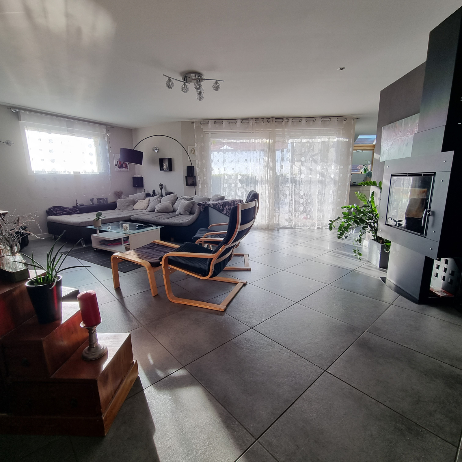 Grande maison familiale, récente, agrémentée d'une jolie terrasse, agréable et ensoleillée en accès de plain-pied sur la cuisine et le salon.