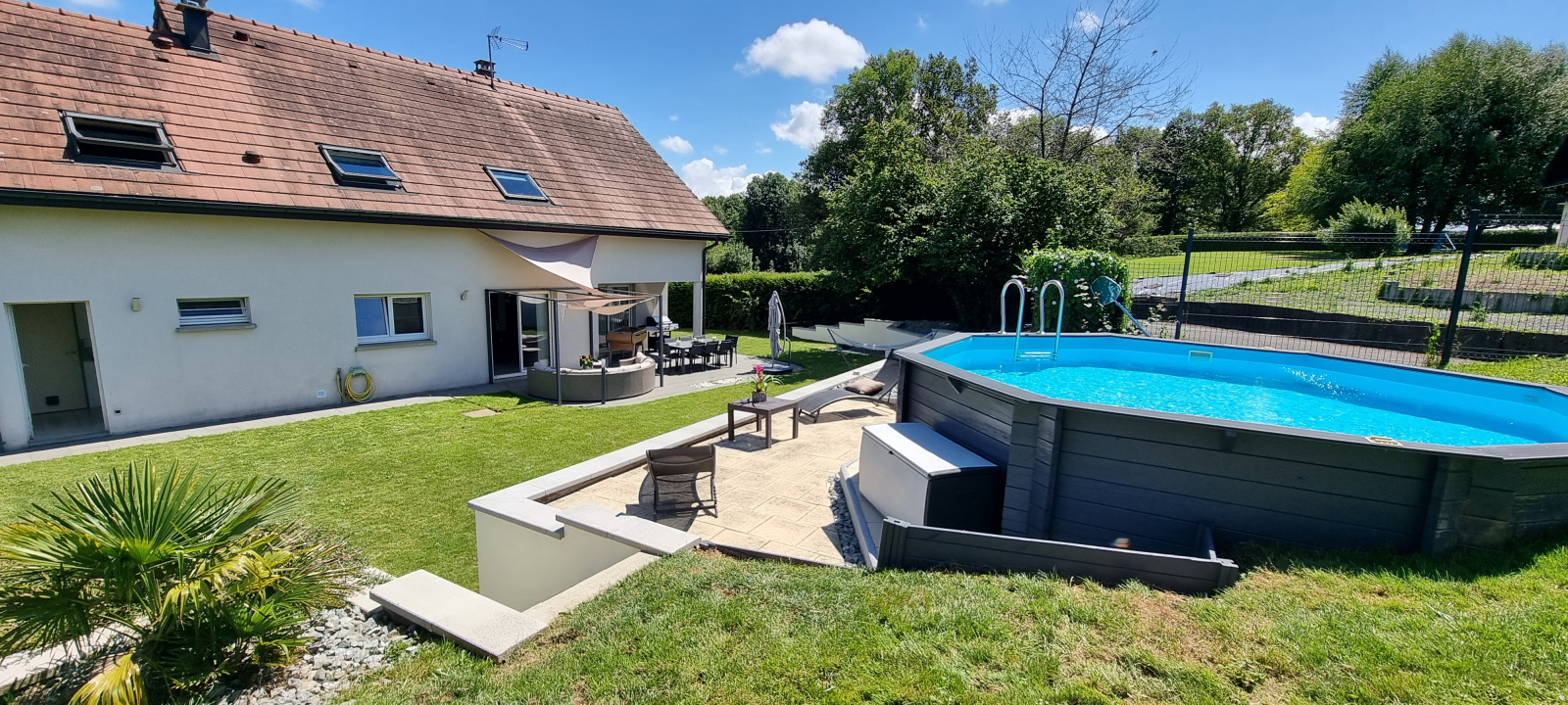 Accès terrasse de plain-pied sur l'arrière.