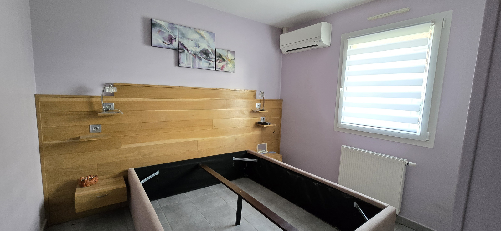 Aérothermie air/air froid/chaud salon/séjour et deux chambres.