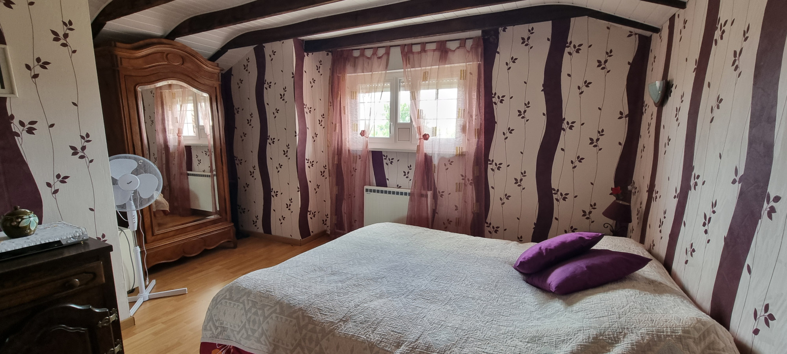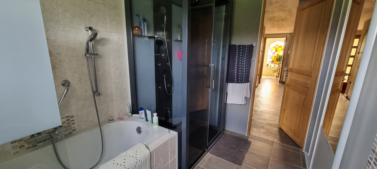 La maison comprend de plain-pied : au rez-de-chaussée, hall d'entrée, couloir, séjour/salon, cuisine équipée, salle de bains (baignoire et douche), toilettes séparées, deux chambres, véranda, accès terrasse de plain-pied. Au premier étage : mezzanine, deux grandes chambres, toilettes avec point d'eau, combles perdus.