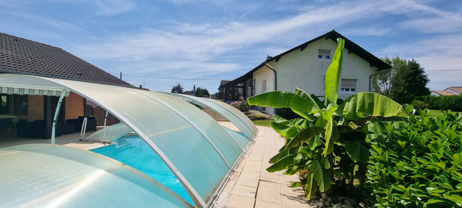 Maison traditionnelle de village, de 1967 avec véranda, piscine enterrée avec liner et dôme, pool house, grand cabanon.