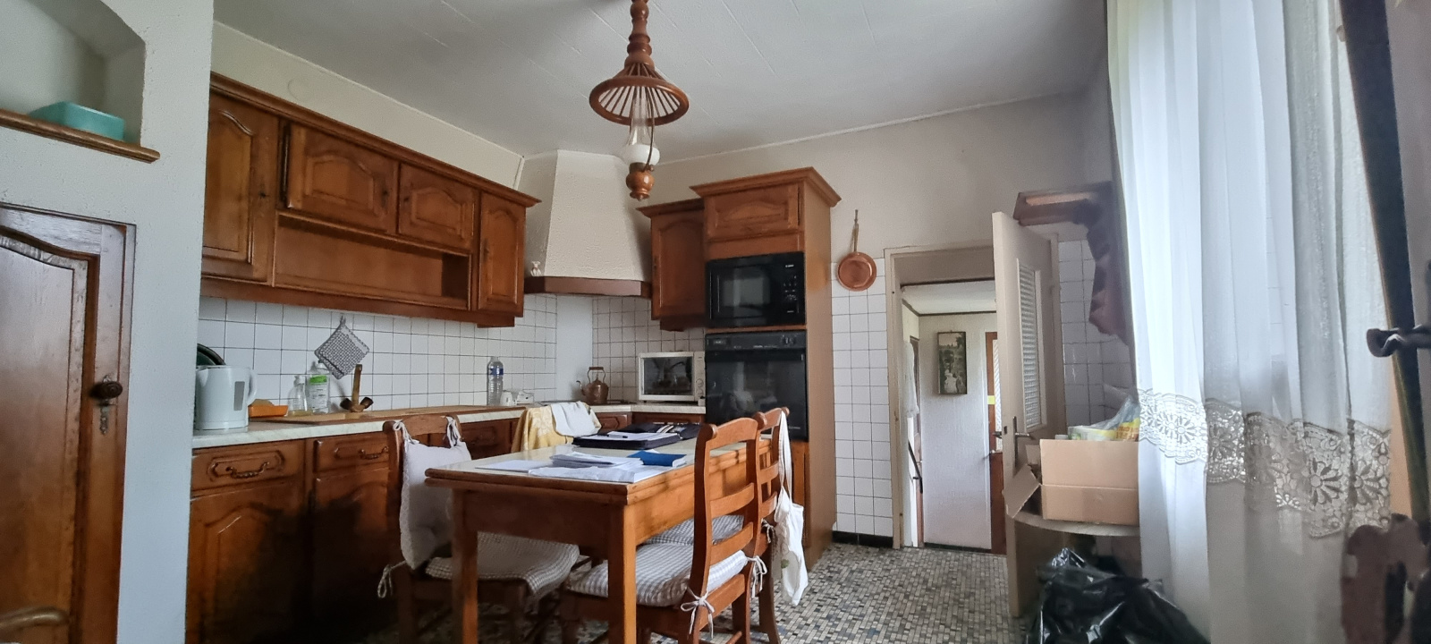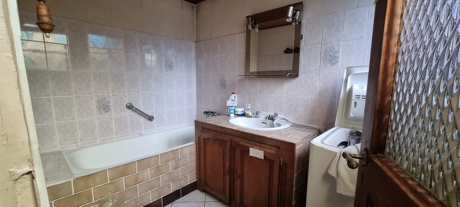 La maison comprend : au rez-de-chaussée, sas d'entrée/couloir, séjour, salon, cuisine semi-équipée, salle de bains, toilettes séparées, chambre,