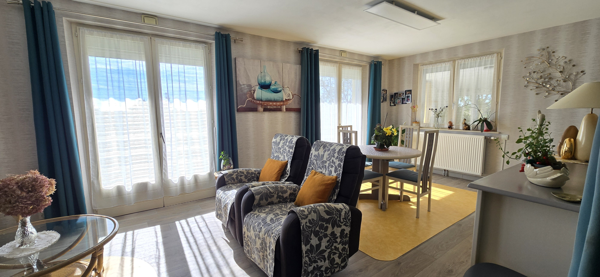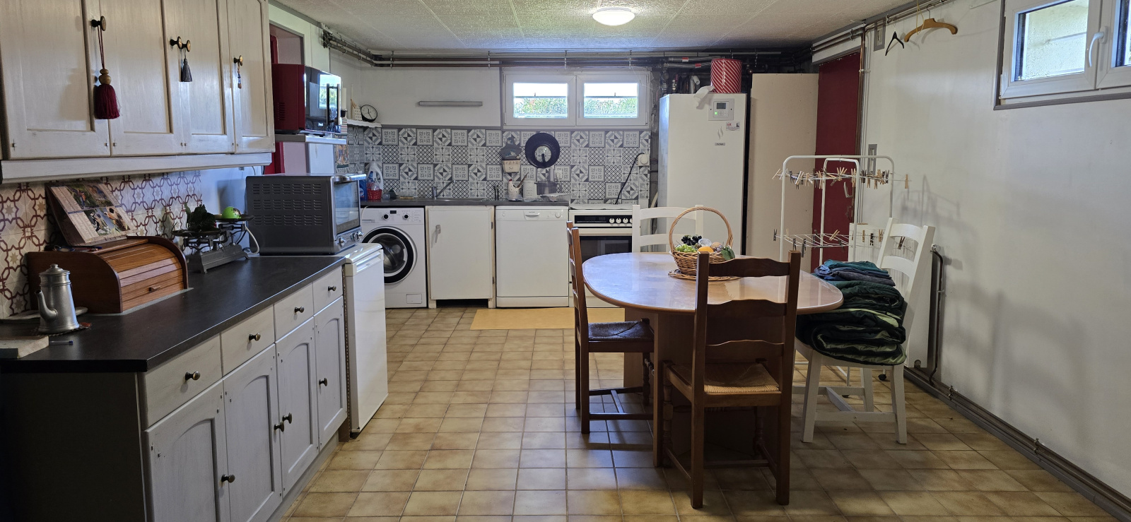 Elevée sur sous-sol enterré avec garage, cave, atelier, grande cuisine d'été avec buanderie/chaufferie.