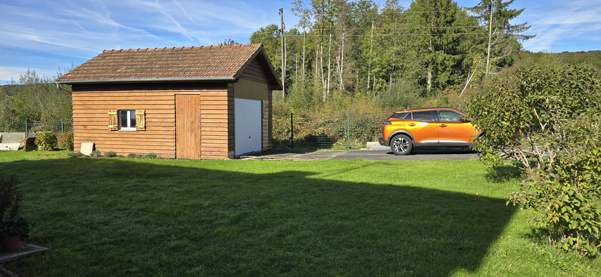 A l’extérieur, joli terrain arboré, annexe (garage).