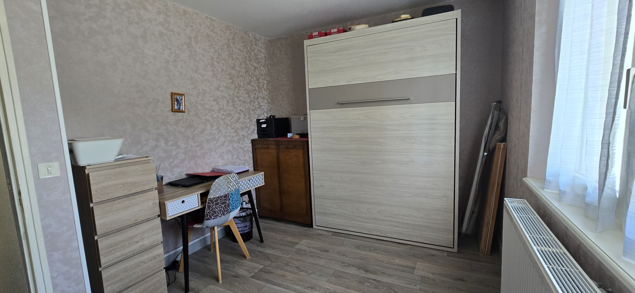 La maison comprend : au rez-de-chaussée, hall d'entrée, couloir, séjour/salon, cuisine équipée, salle d’eau, toilettes séparées, deux chambres,