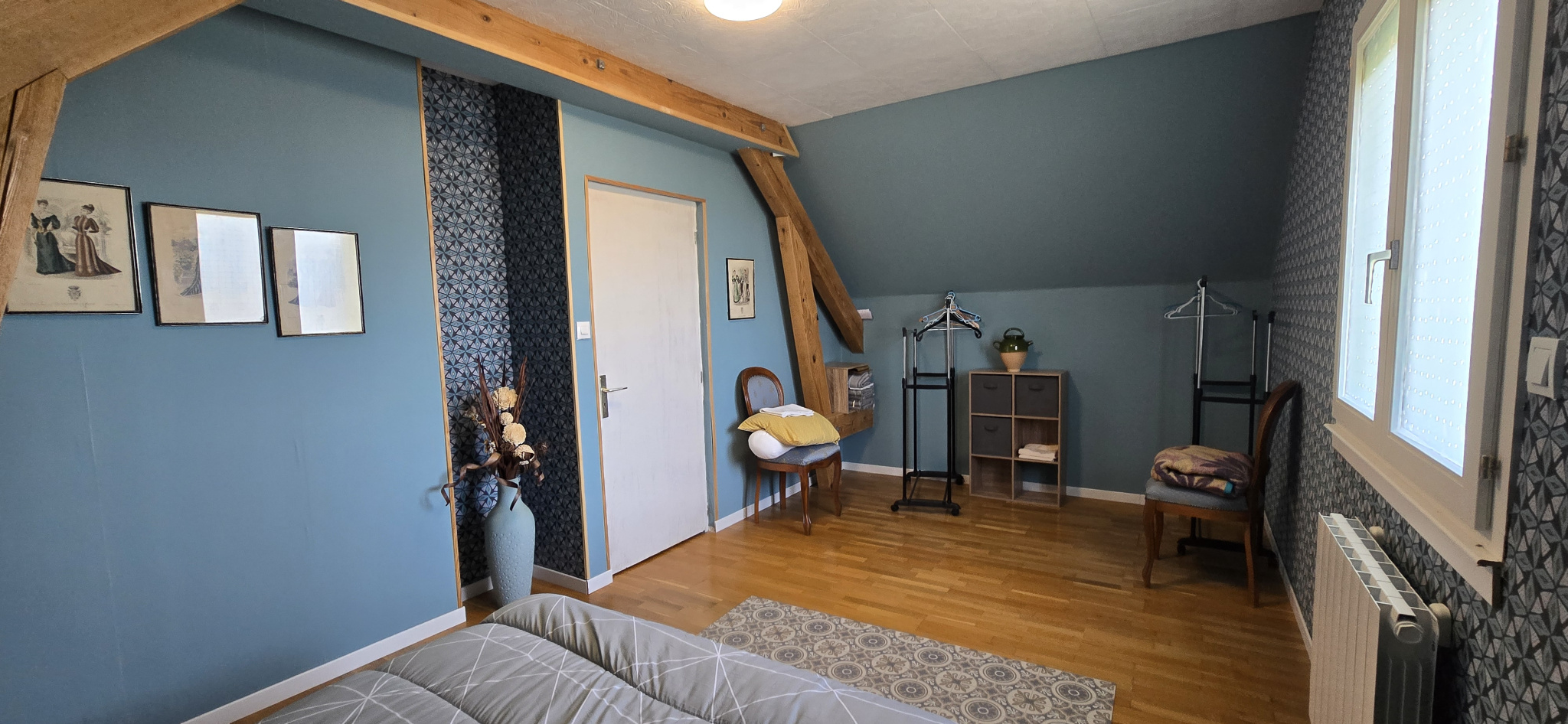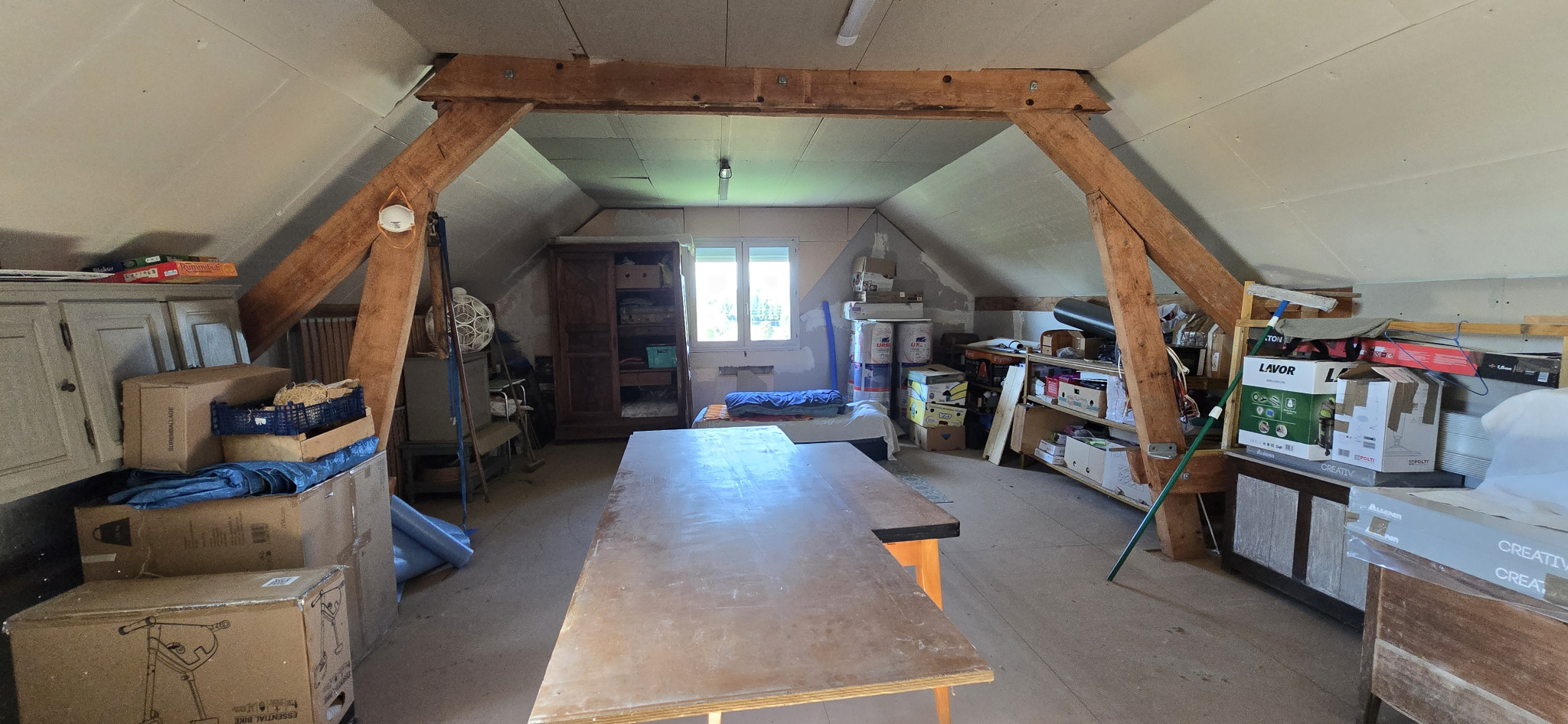 Au premier étage : palier, une grande chambre, un grand grenier.