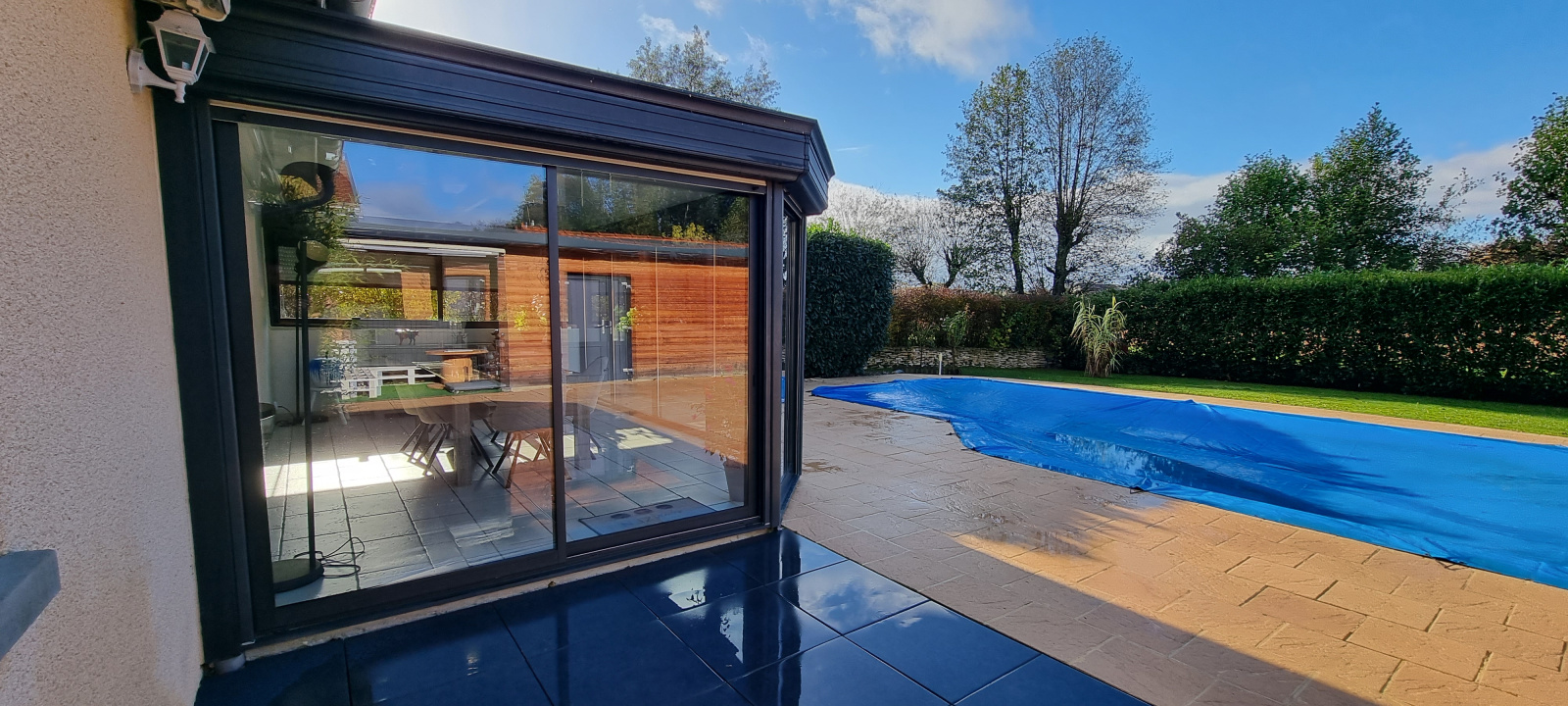 accès terrasse extérieur et pool-house de plain-pied.