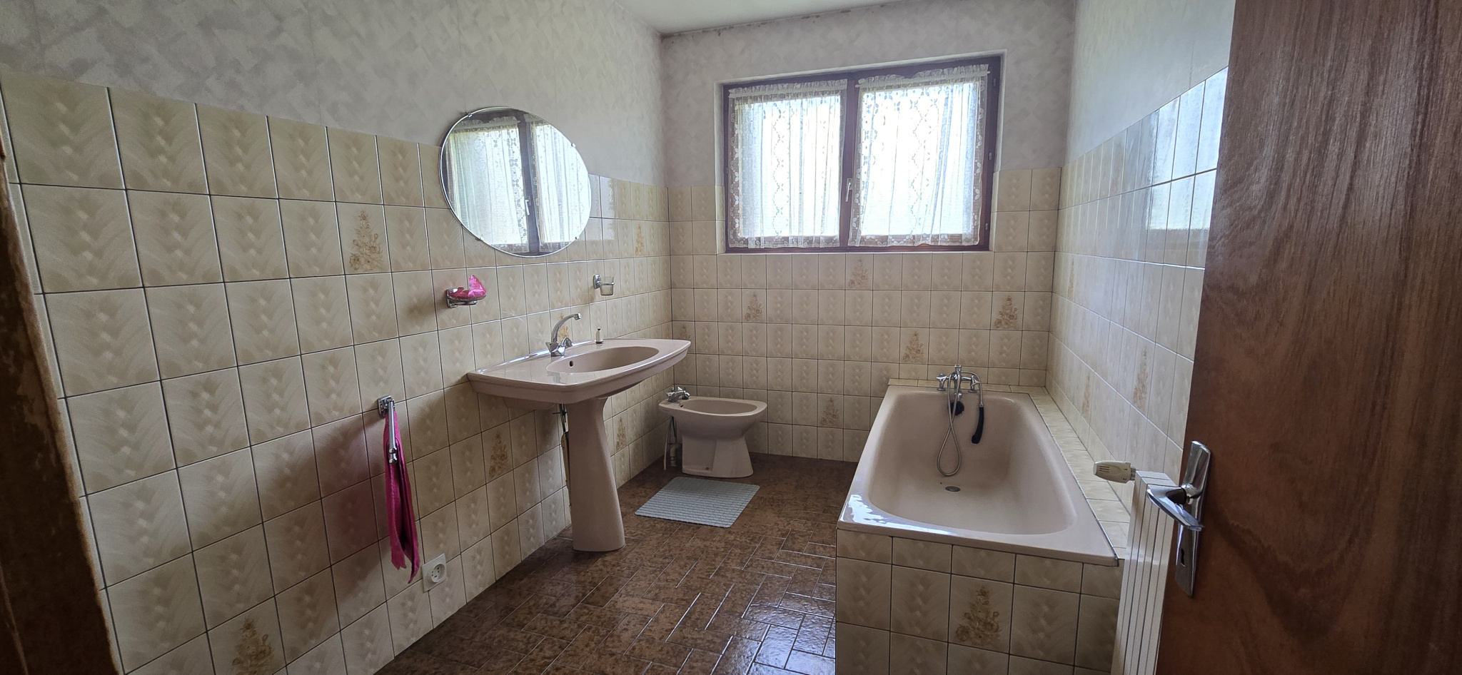 Elevée sur sous-sol enterré avec grand garage, cave, chaufferie.