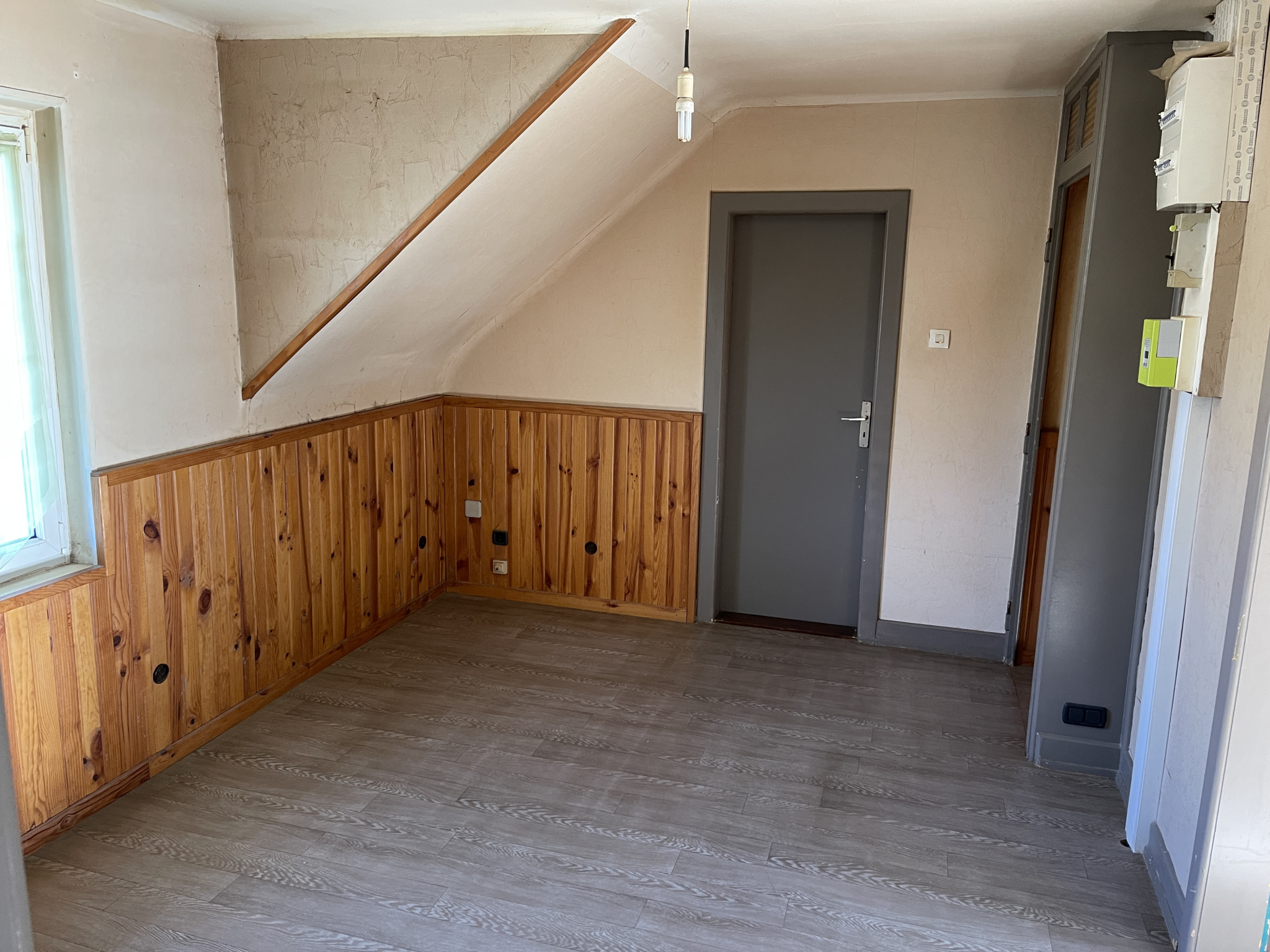 Au premier étage : Mezzanine, 1 chambre, 2 chambres en enfilade, pièce grenier, grenier au-dessus du garage