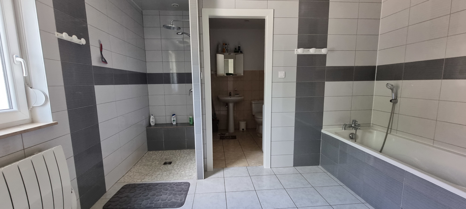 La maison comprend : au rez-de-chaussée, hall d'entrée, cuisine/salon/séjour, toilettes séparées avec point d'eau, salle de bains avec douche et baignoire et buanderie, 3 chambres,