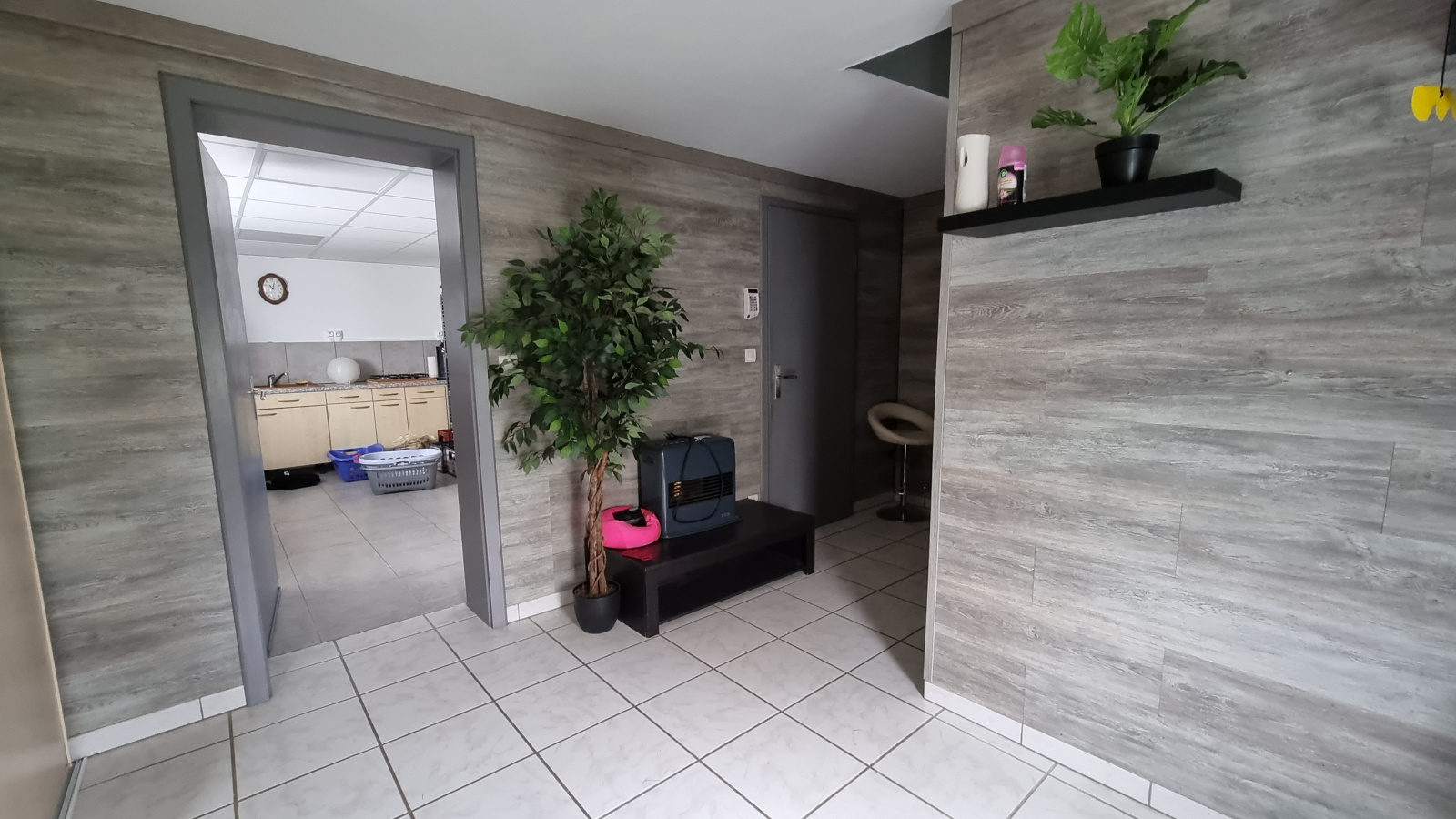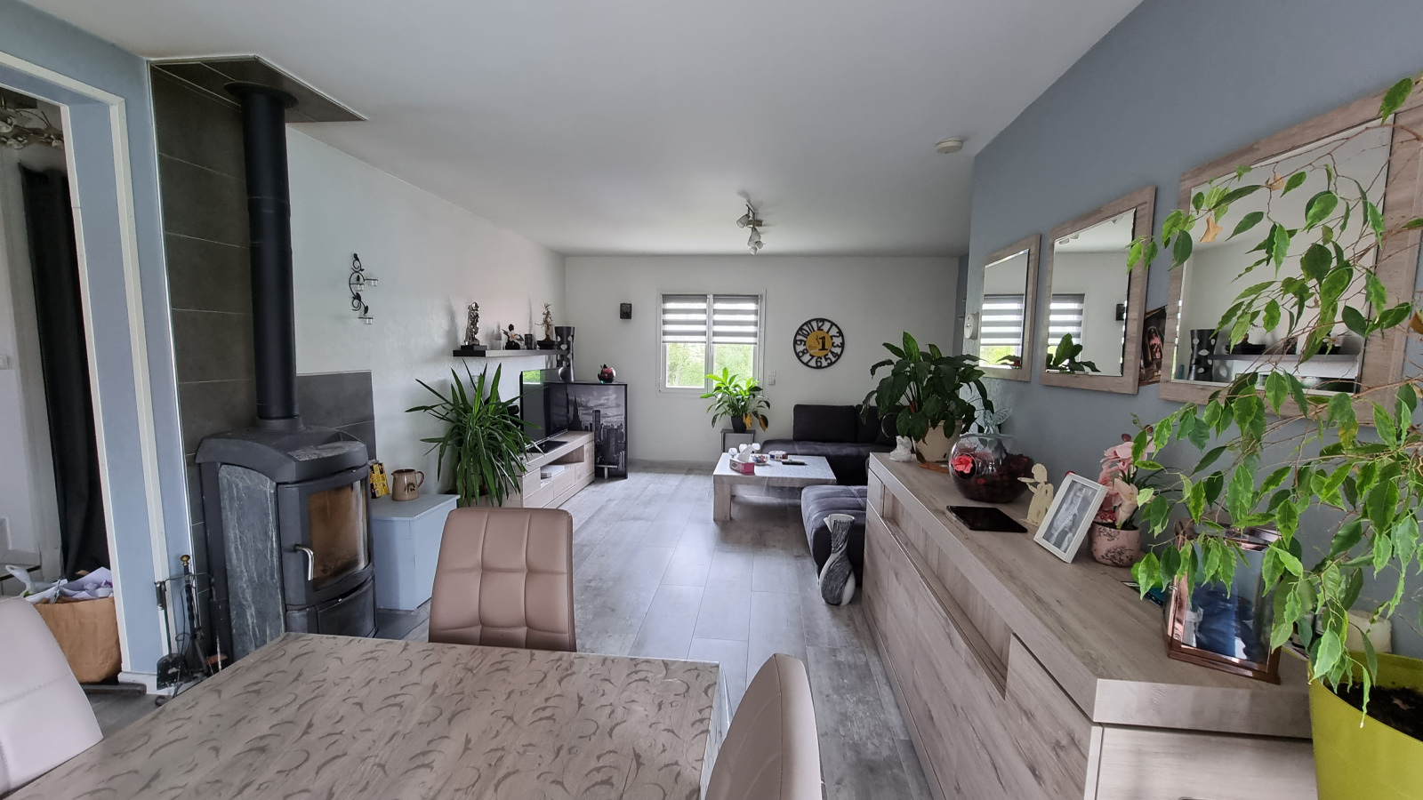 Chauffage : électrique au sol et poêle à bois.