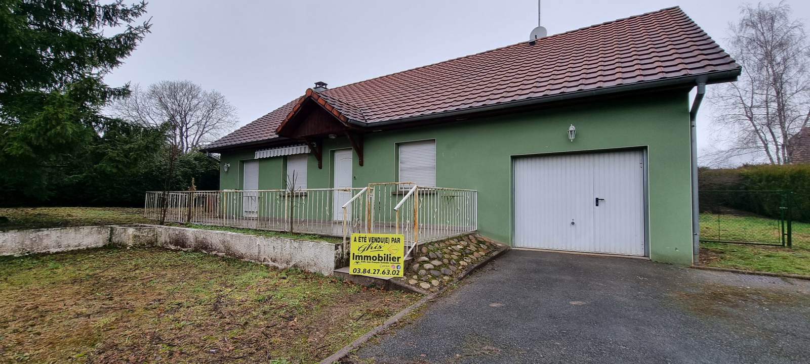 Maison de plain-pied dans un petit village.