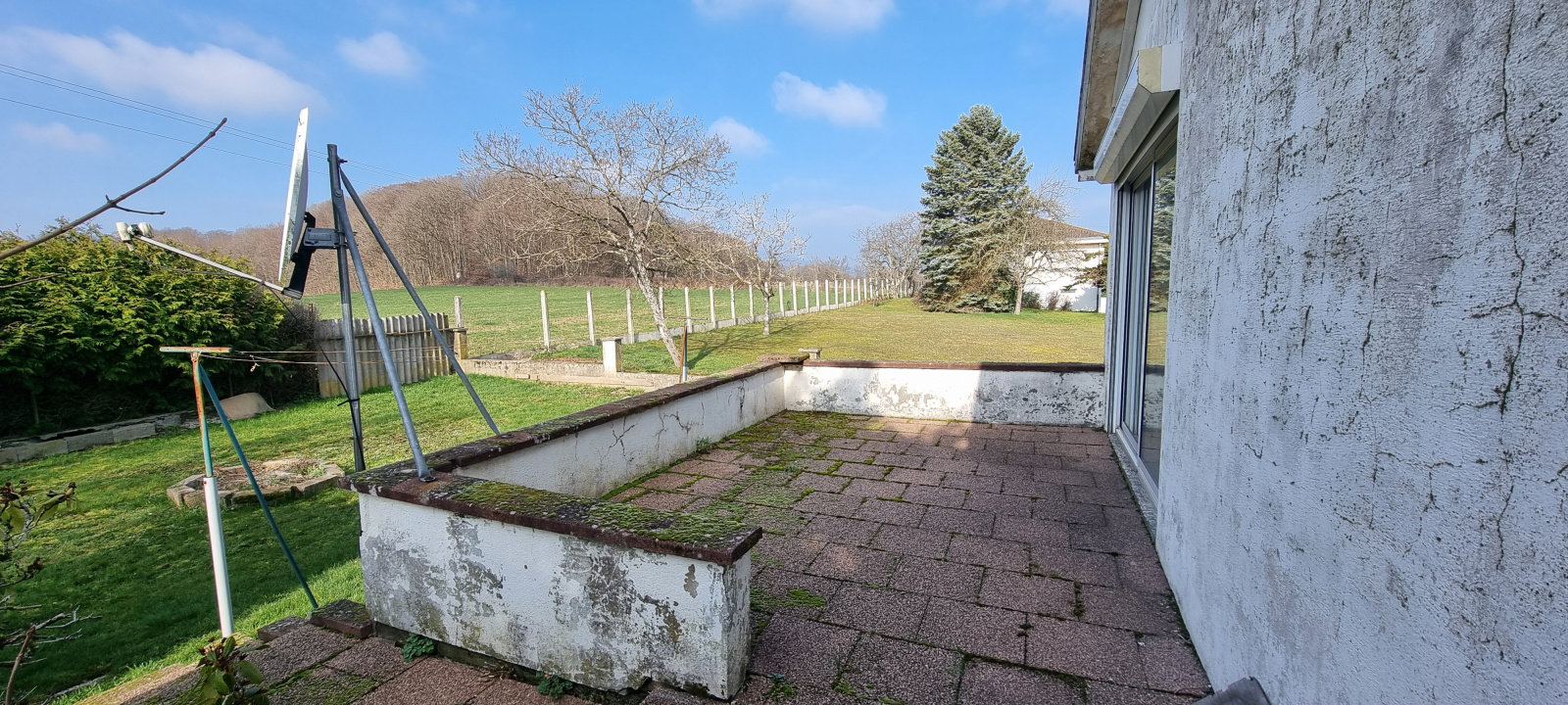 A l’extérieur, terrain clos en partie et arboré, terrasse et jardin.